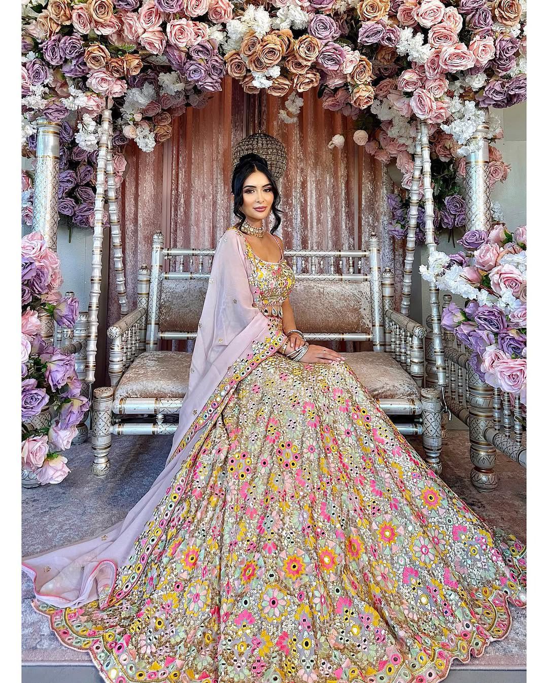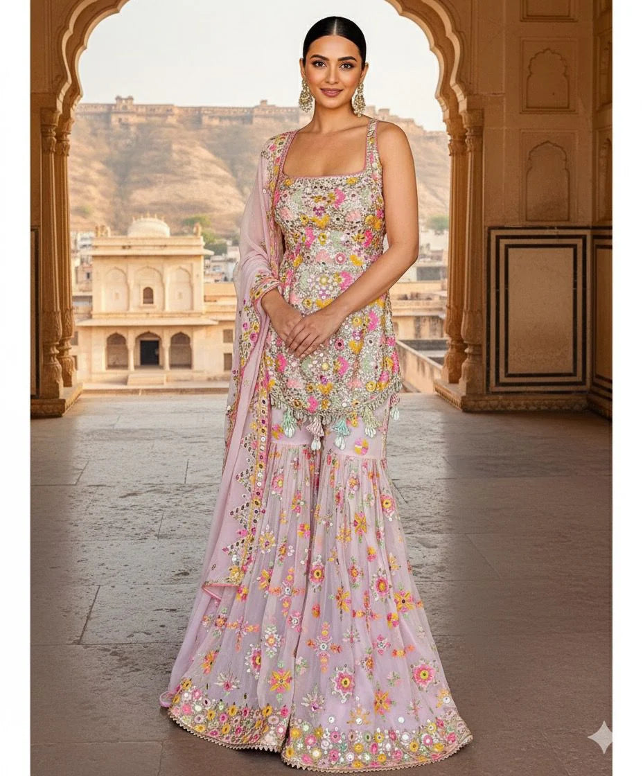 Light Beige Pure Banarasi Handwork Brocade With Stone Work Talwar Pattern 44 inch width (P)