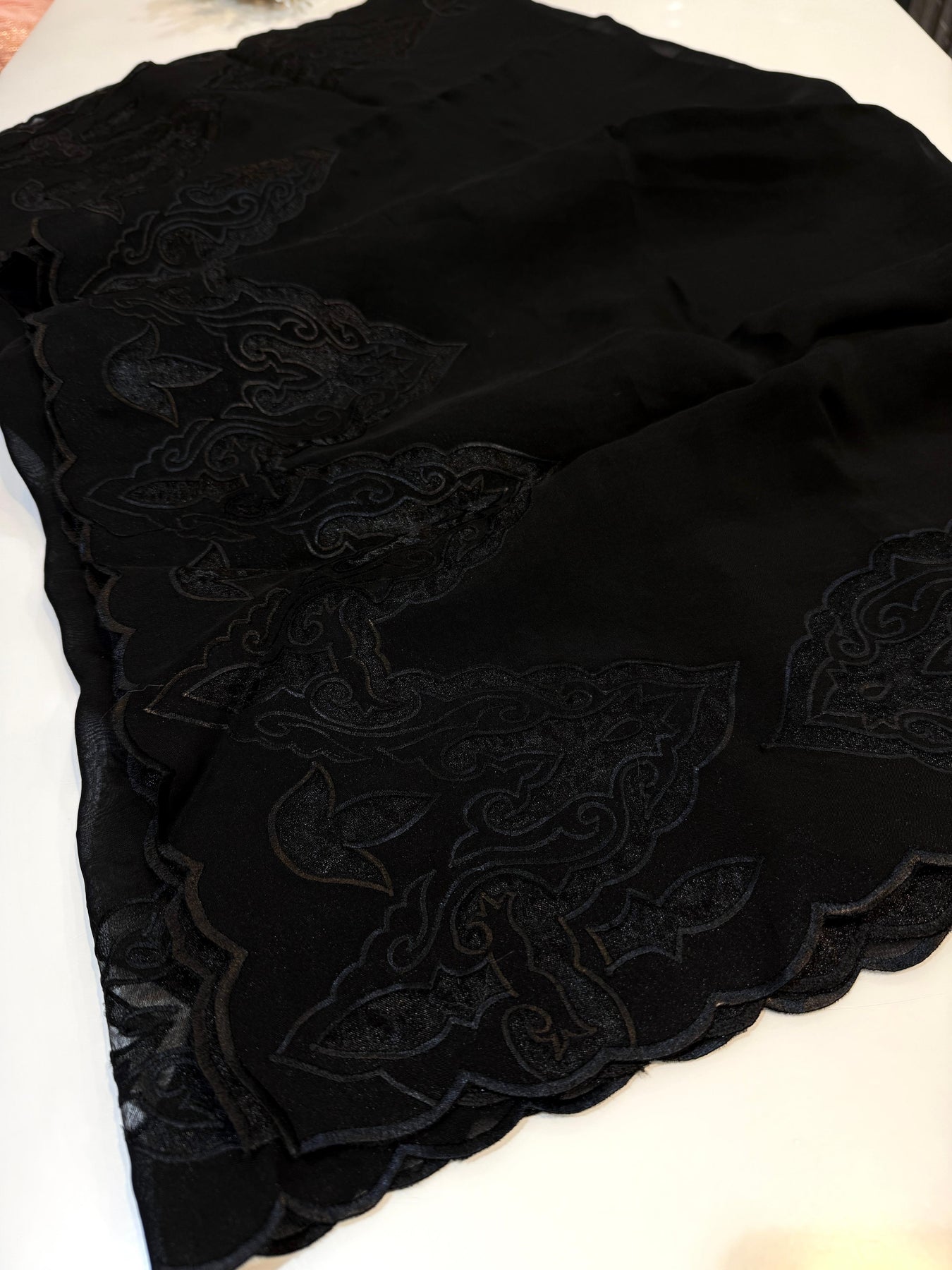 Black Pure Organza Dupatta with scallop borders 2.50 meter length