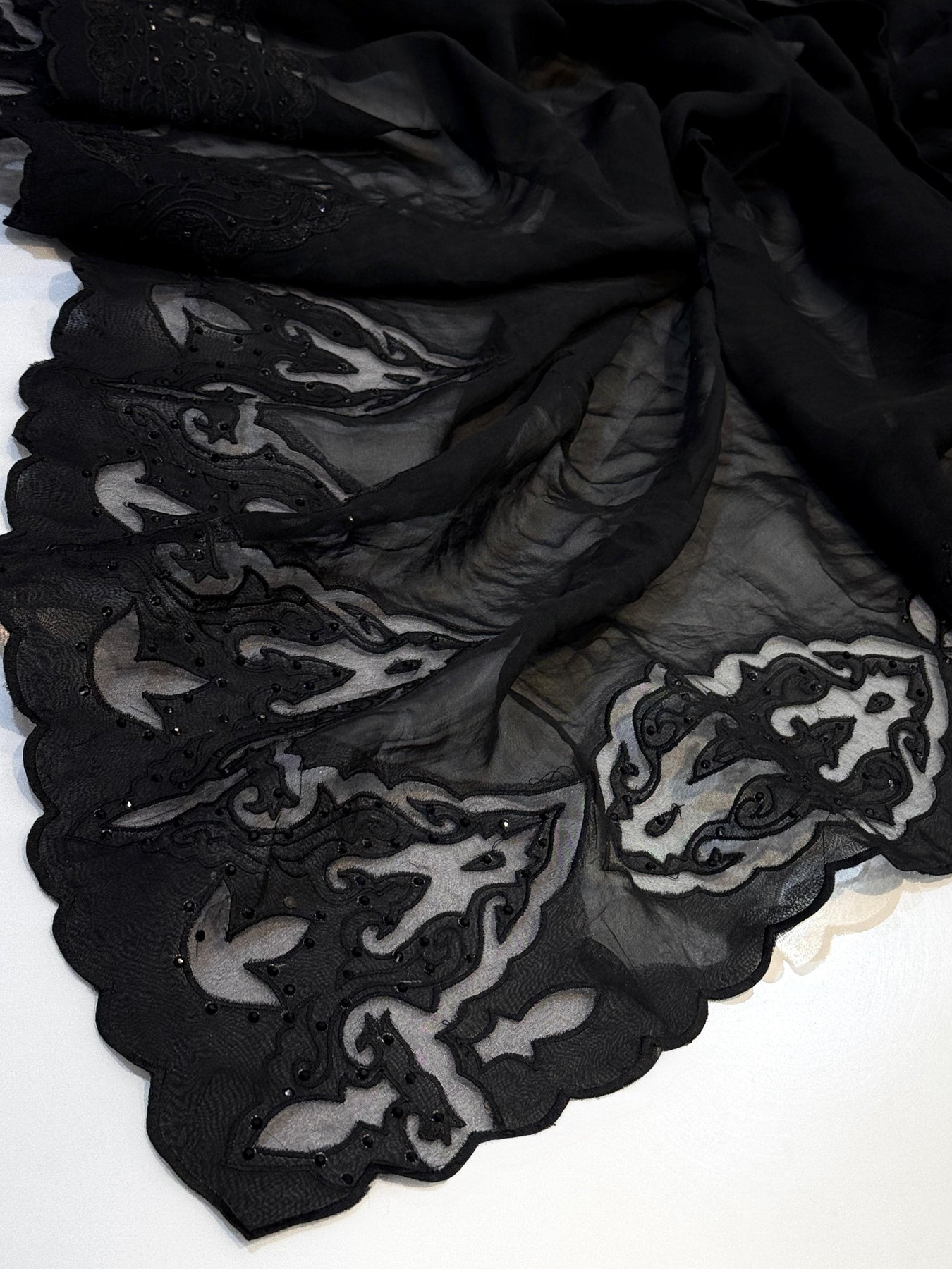 Black Pure Organza Handwork Dupatta with scallop borders 2.50 meter length with stone work