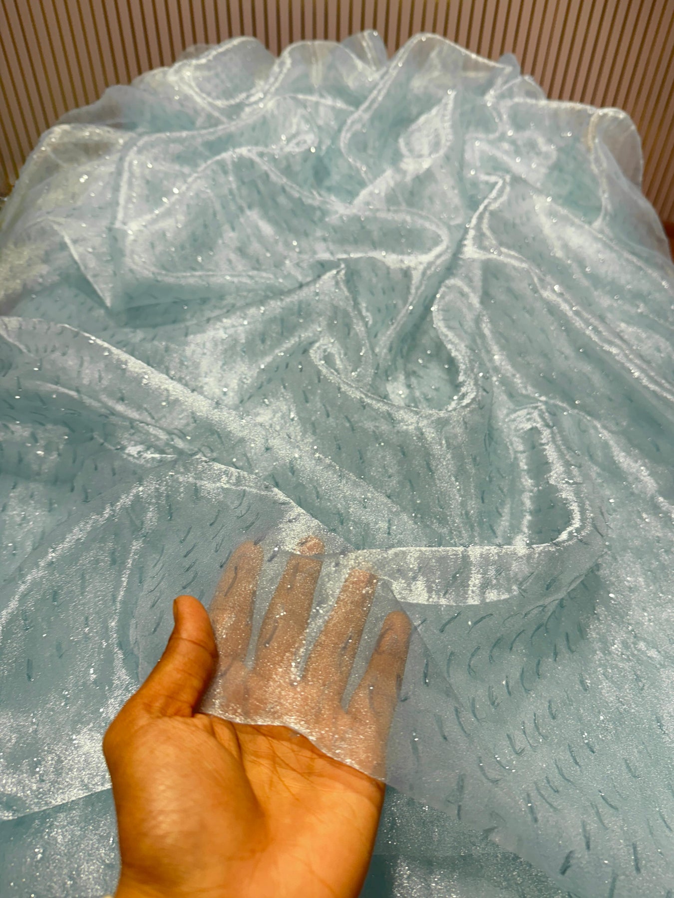 Dusty Blue Imported Organza Dobby Jacquard 54 inch width (shade -J)