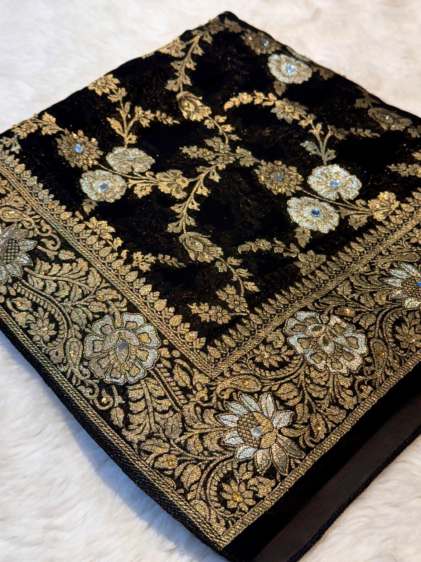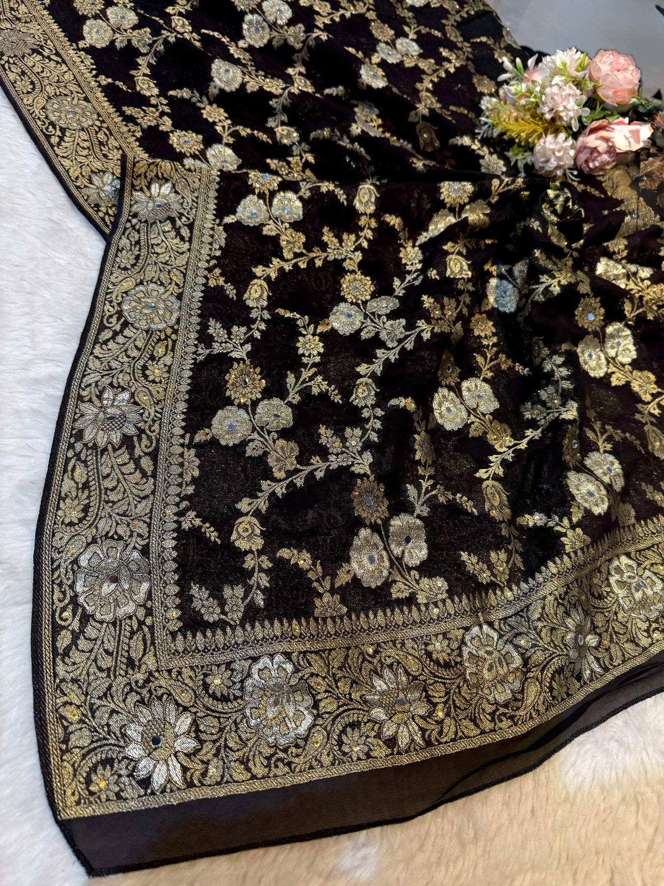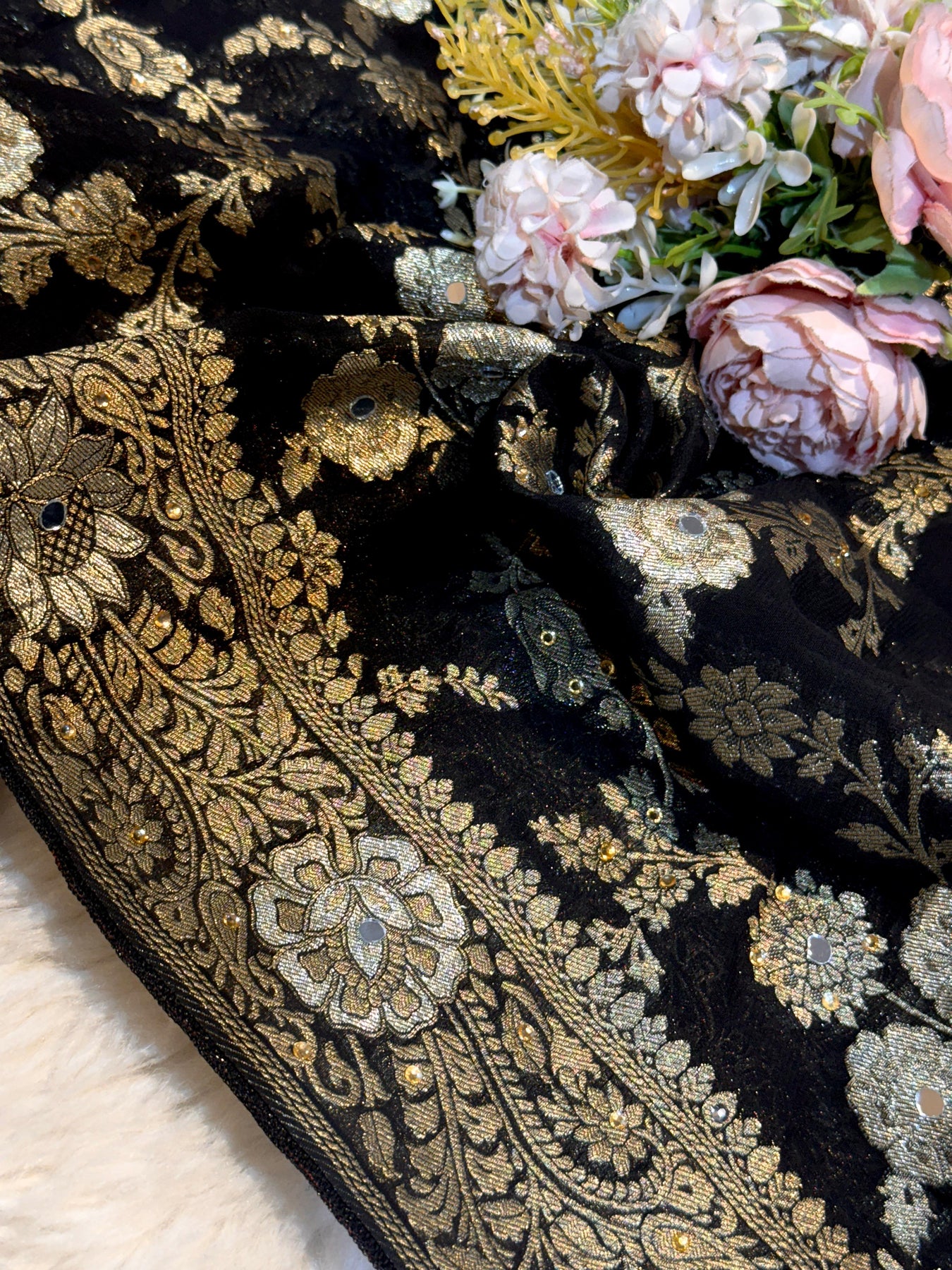 Sandook Black Pure Georgette Banarsi Dupatta With Handwork 2.50 Meter length