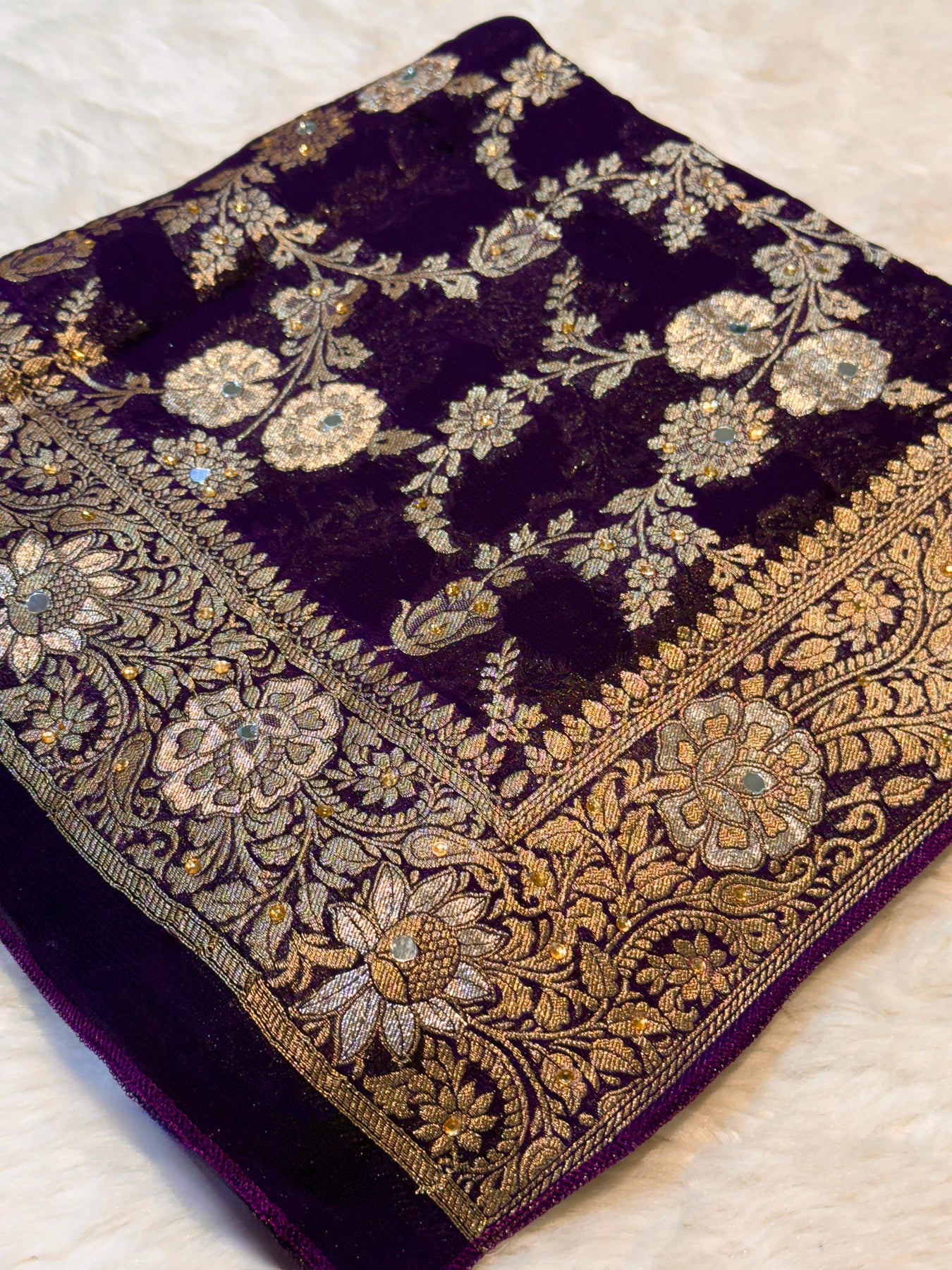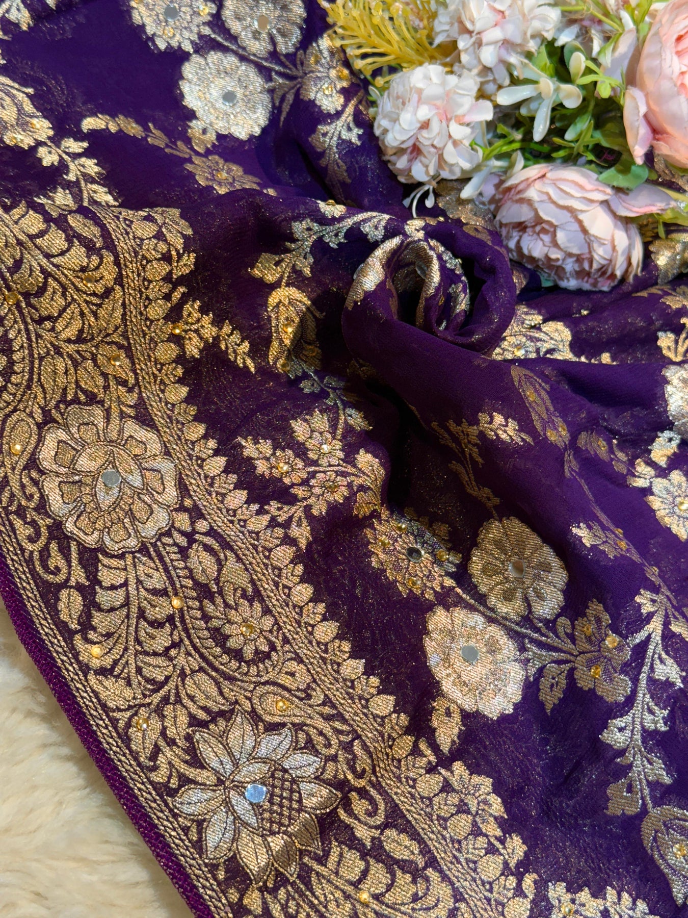 Sandook Dark Purple Pure Georgette Banarsi Dupatta With Handwork 2.50 Meter length