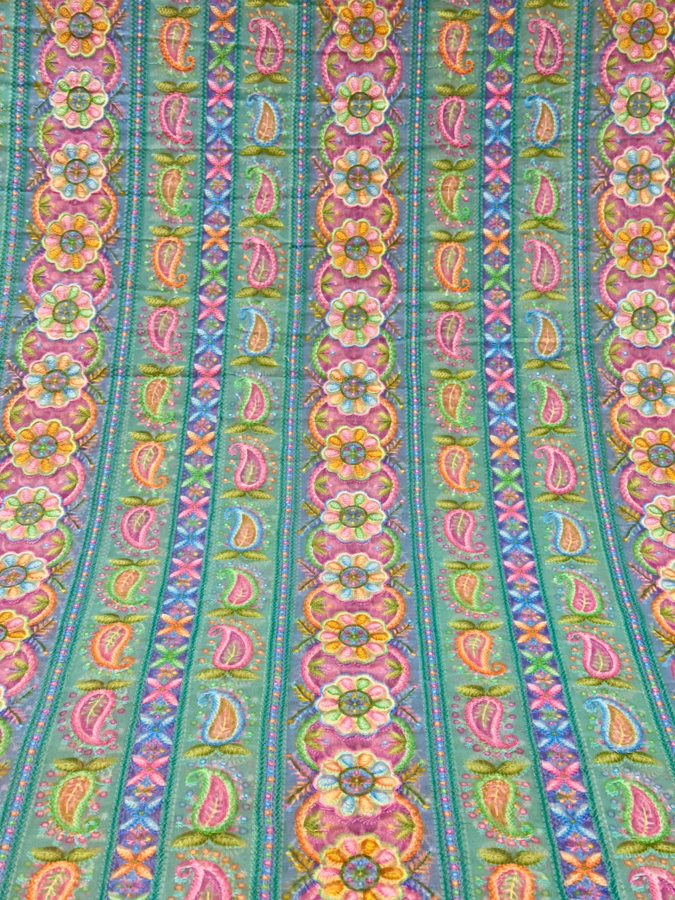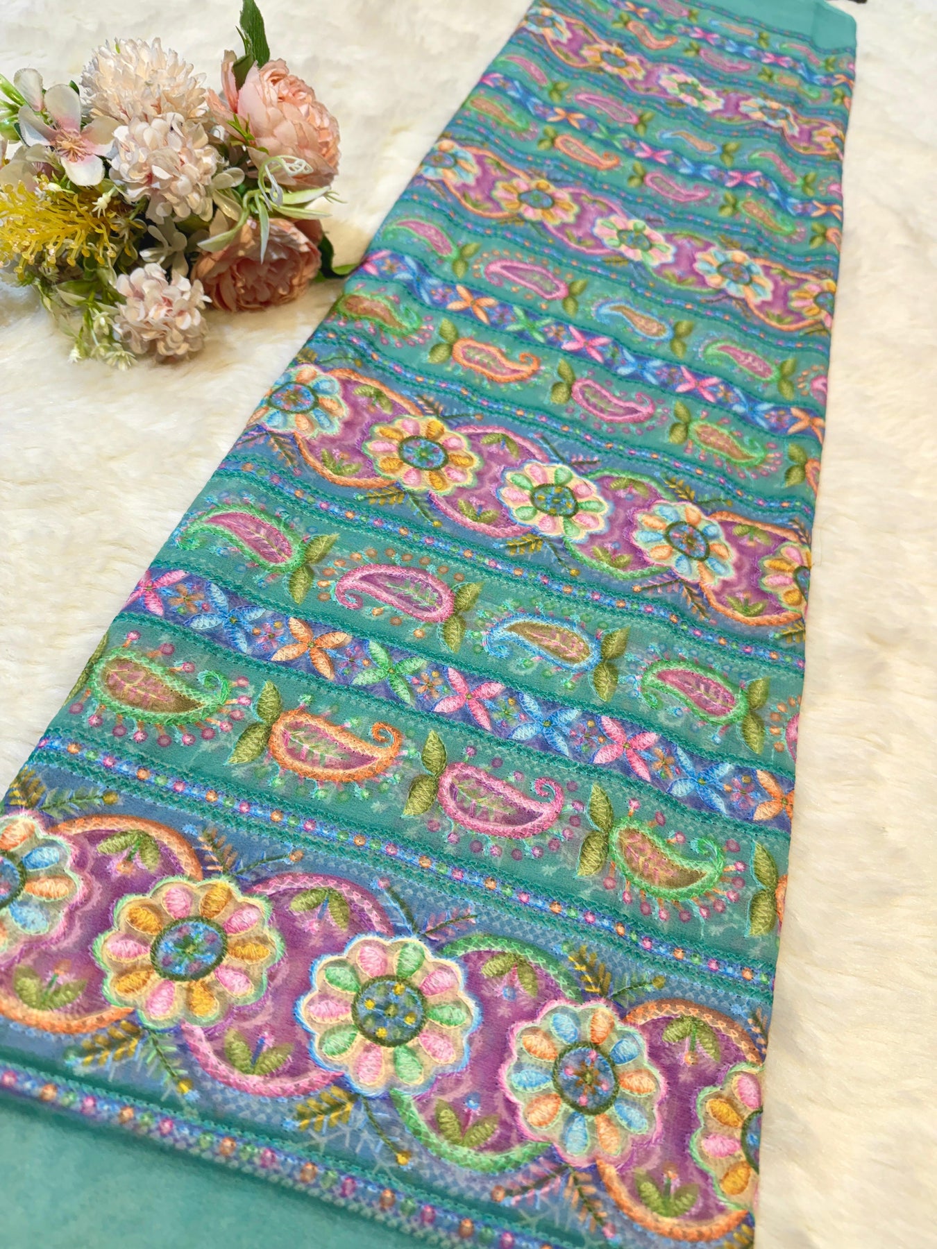Aqua Green Georgette Chikankari Stripe Floral Threadwork Embroidery 44 inch width