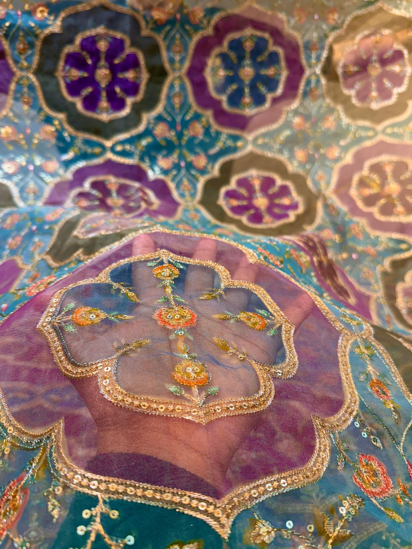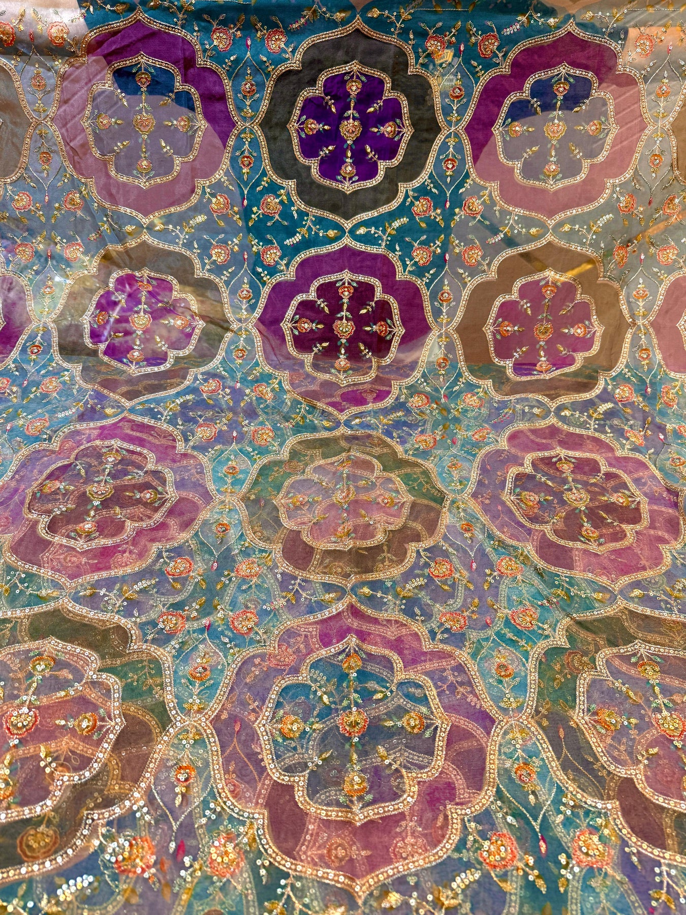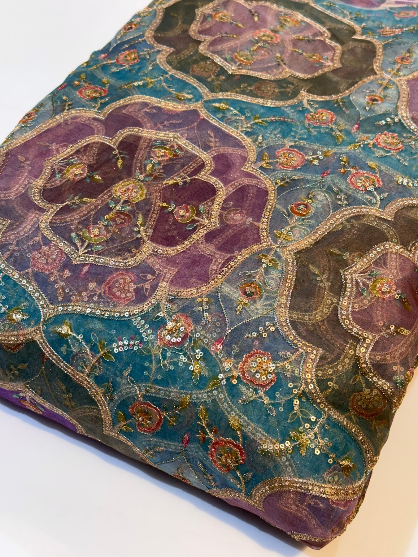 Iliana Aqua Blue Organza Prints with Embroidery 44 inch width