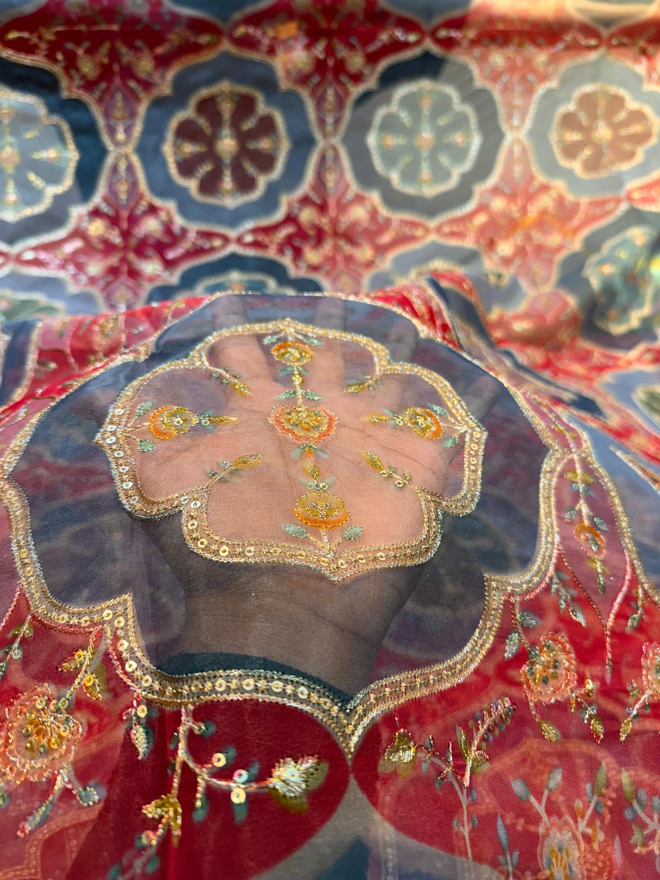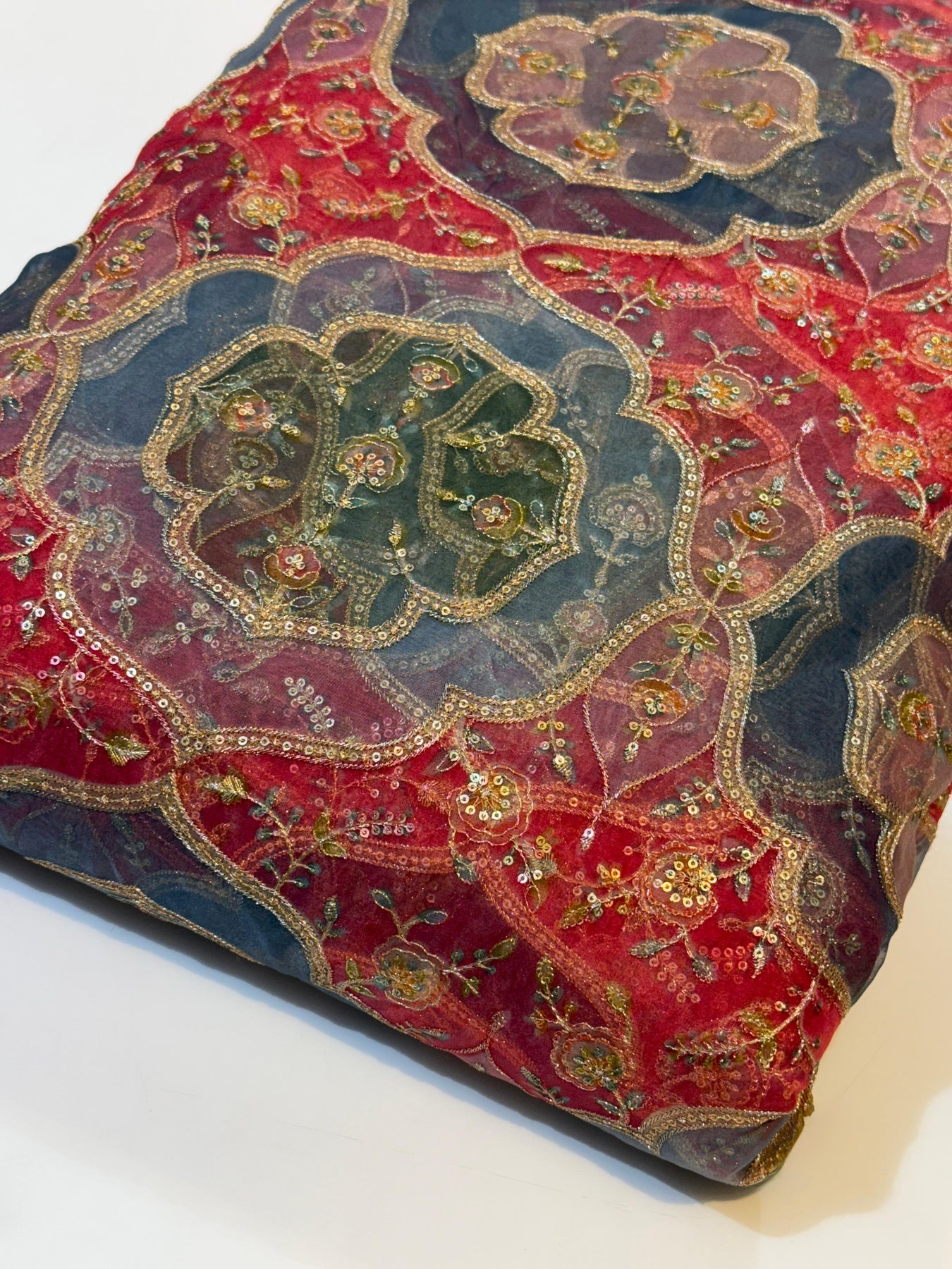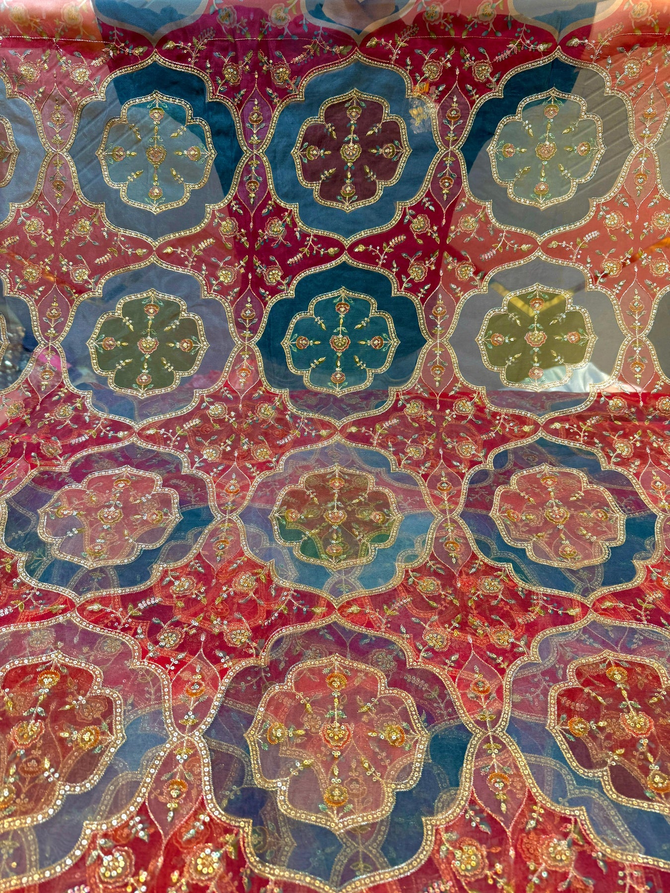 Iliana Hot Pink Organza Prints with Embroidery 44 inch width