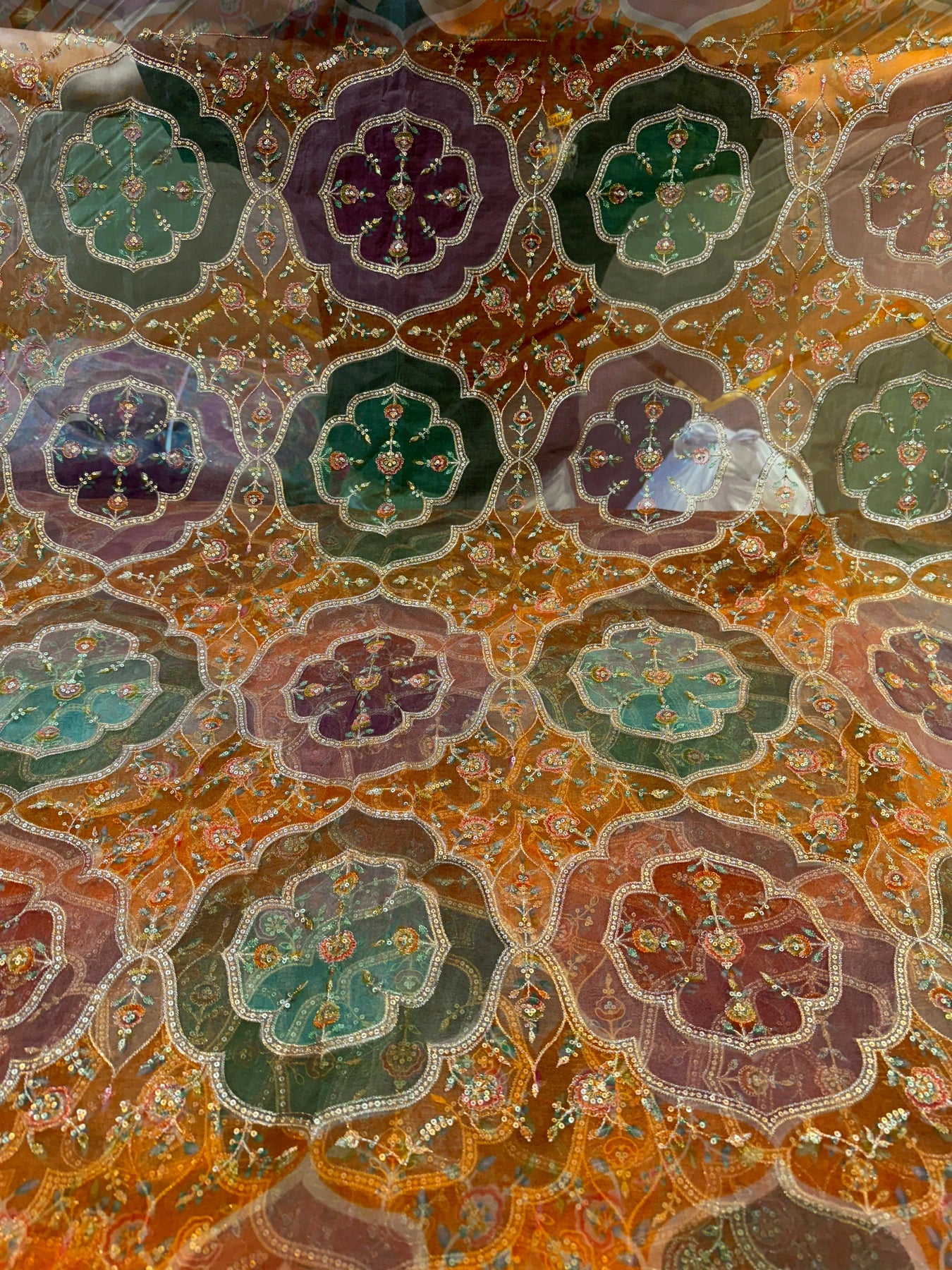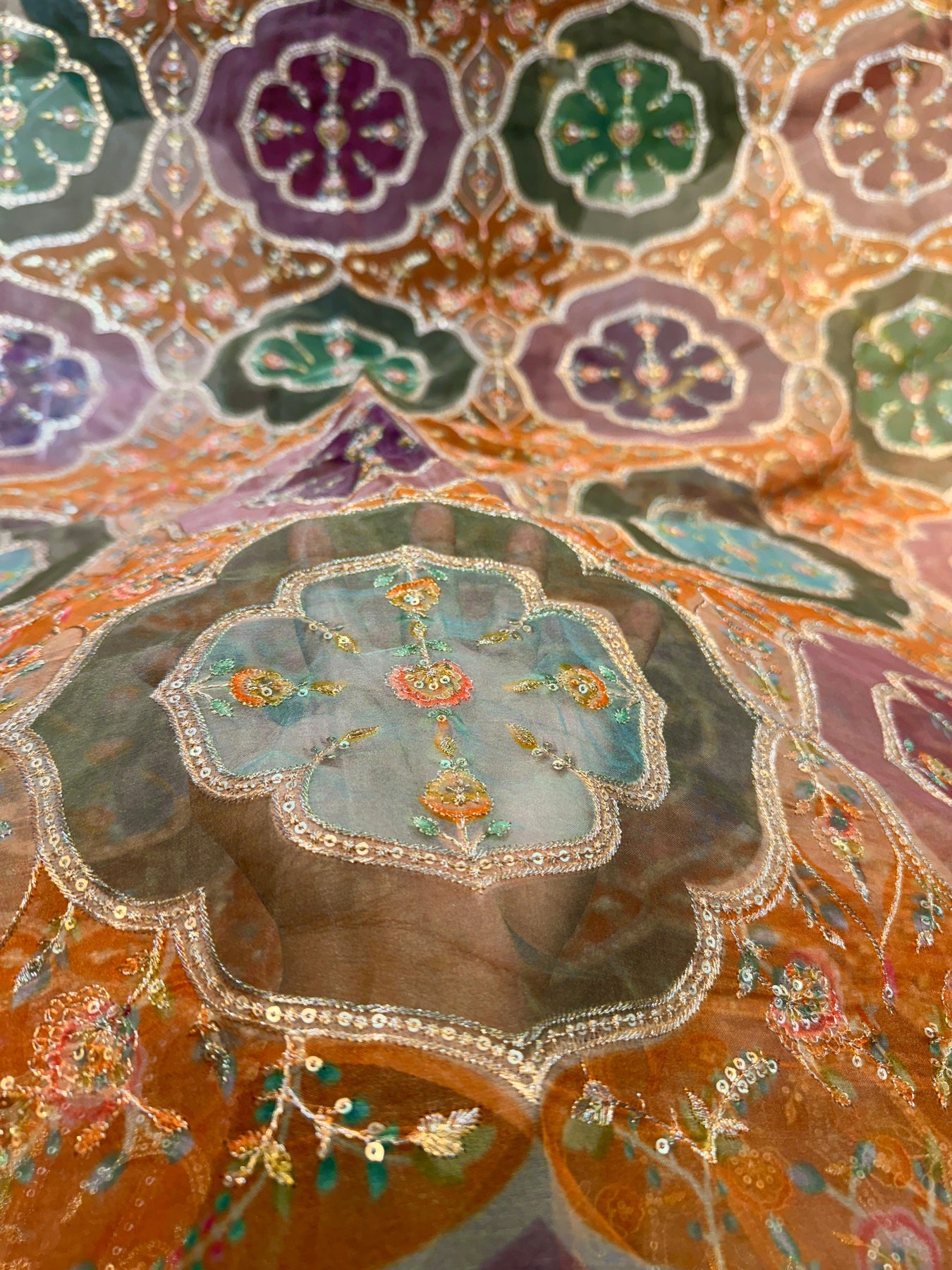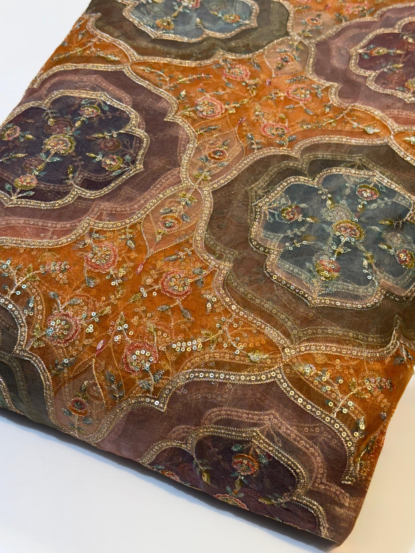 Iliana Orange Organza Prints with Embroidery 44 inch width