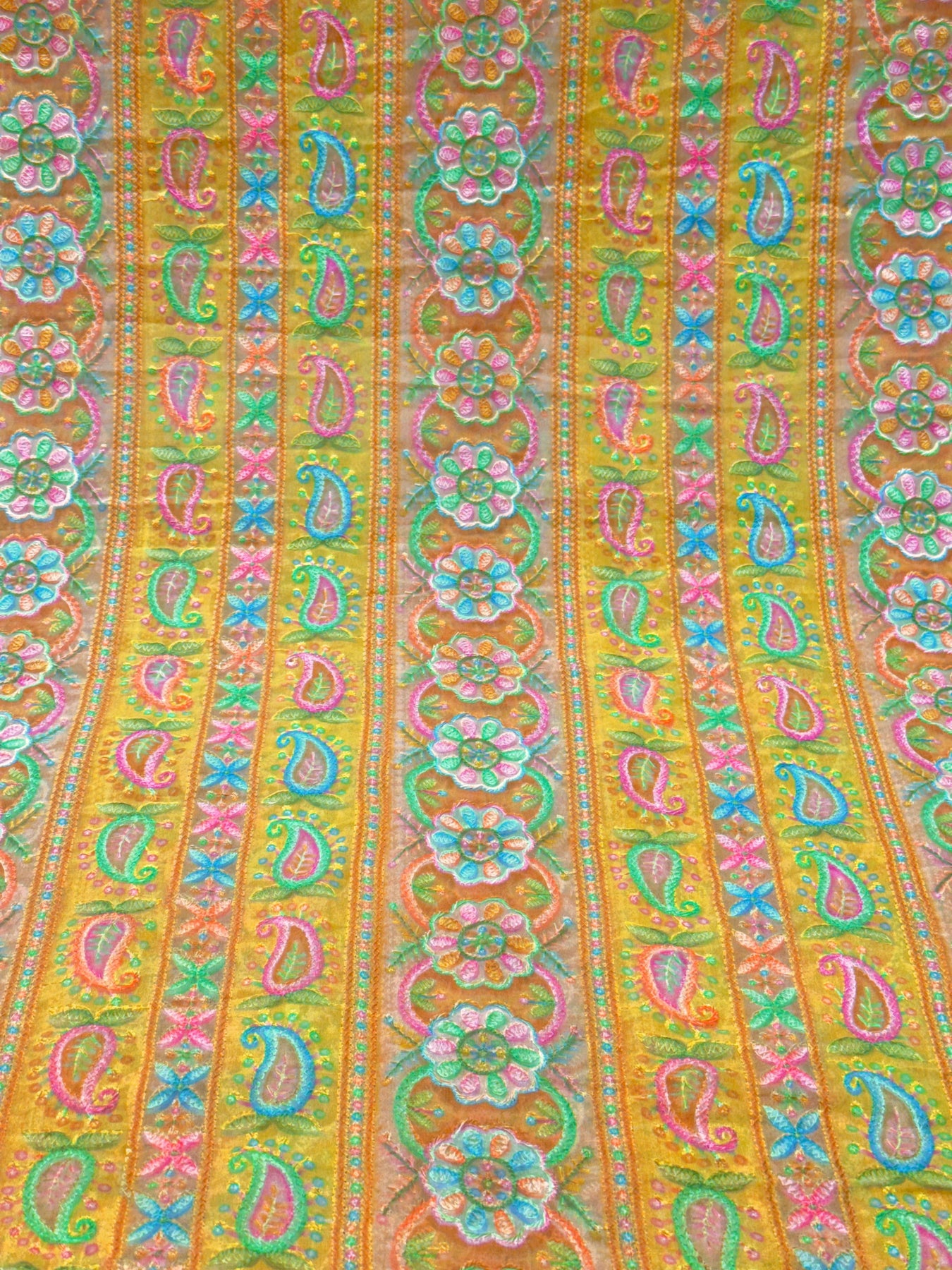 Yellow Georgette Chikankari Stripe Floral Threadwork Embroidery 44 inch width