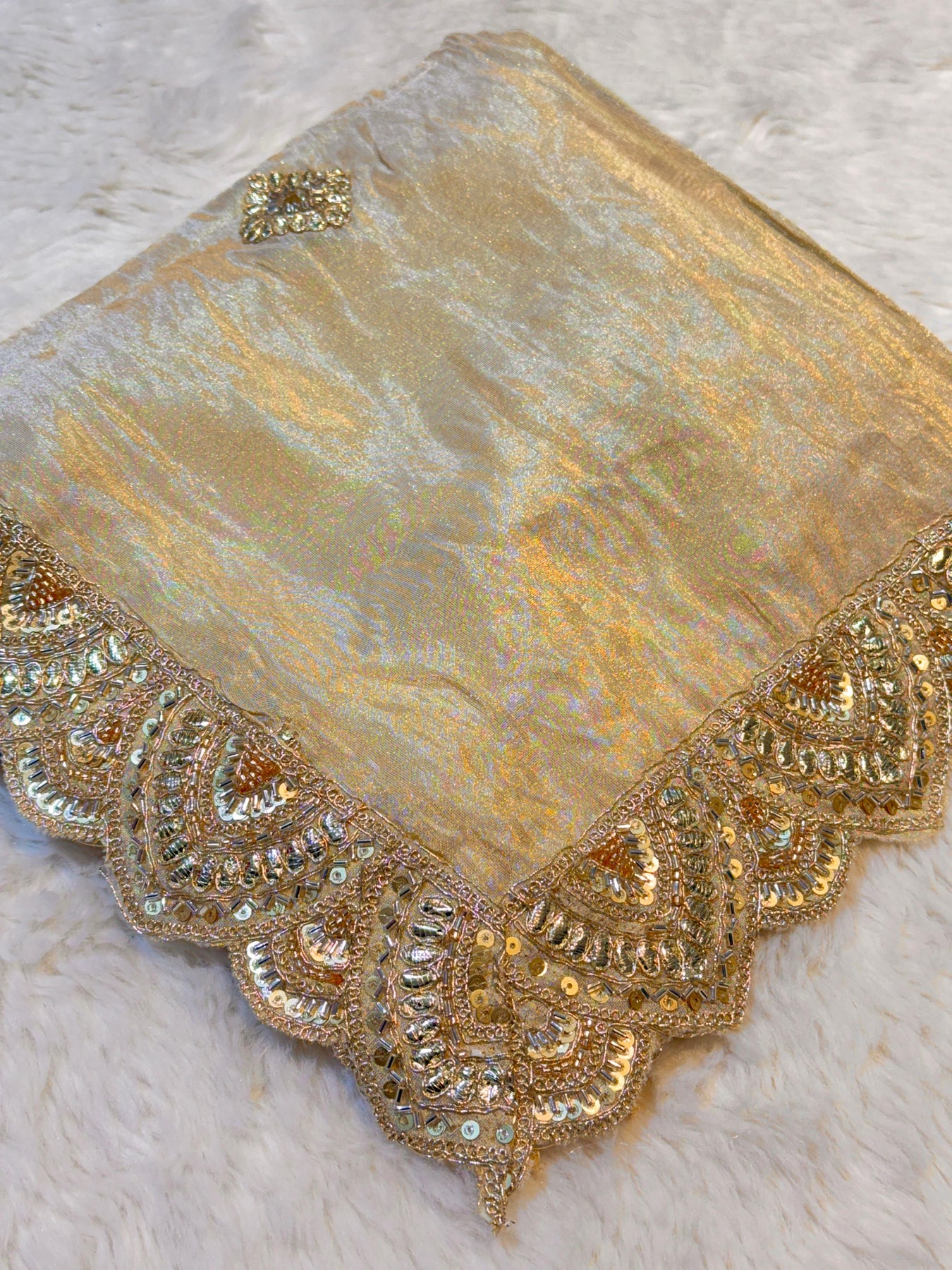 Mehz Pro Zari Tissue Handwork Dyeable Dupatta (2.40 meter length)