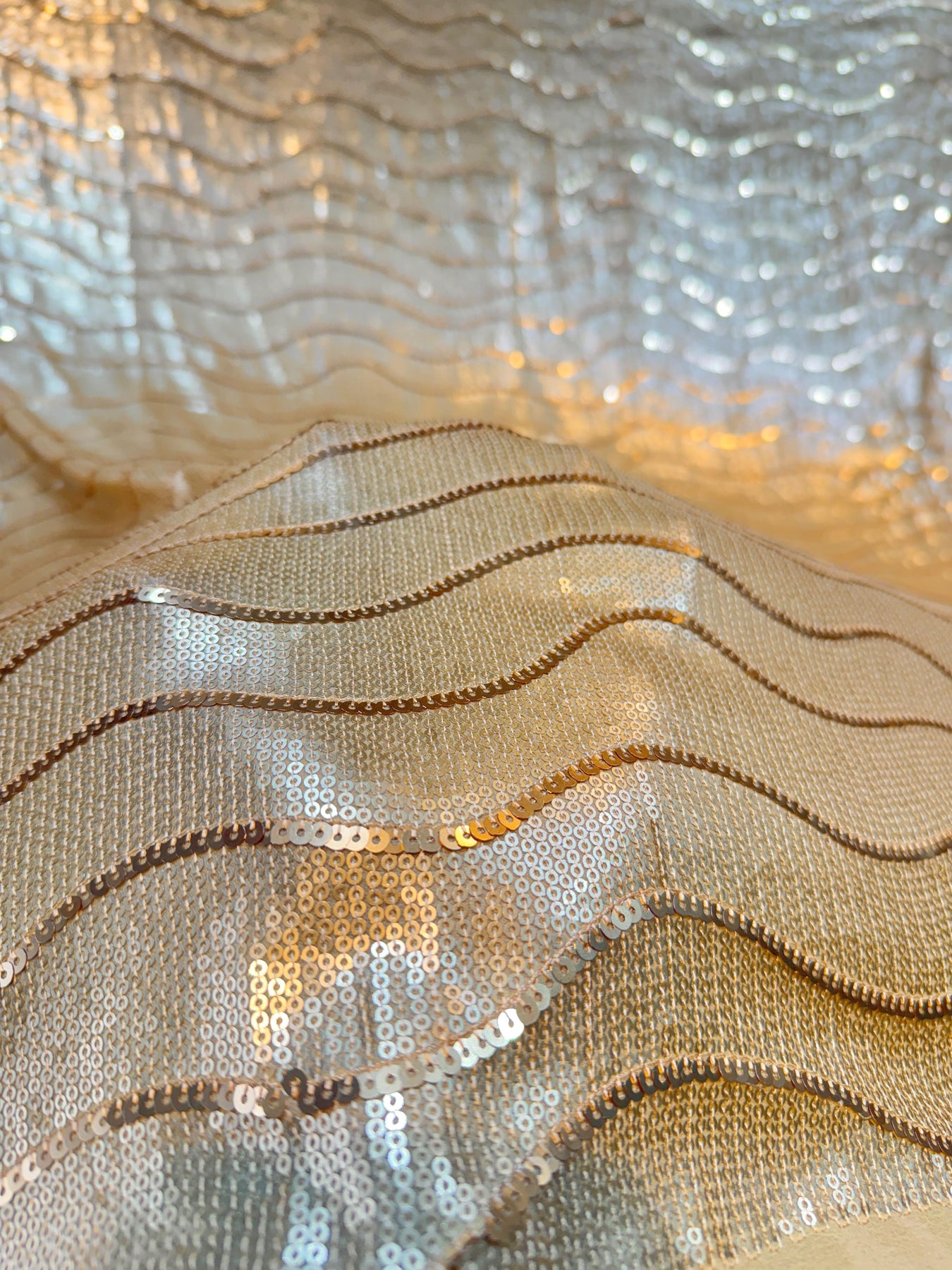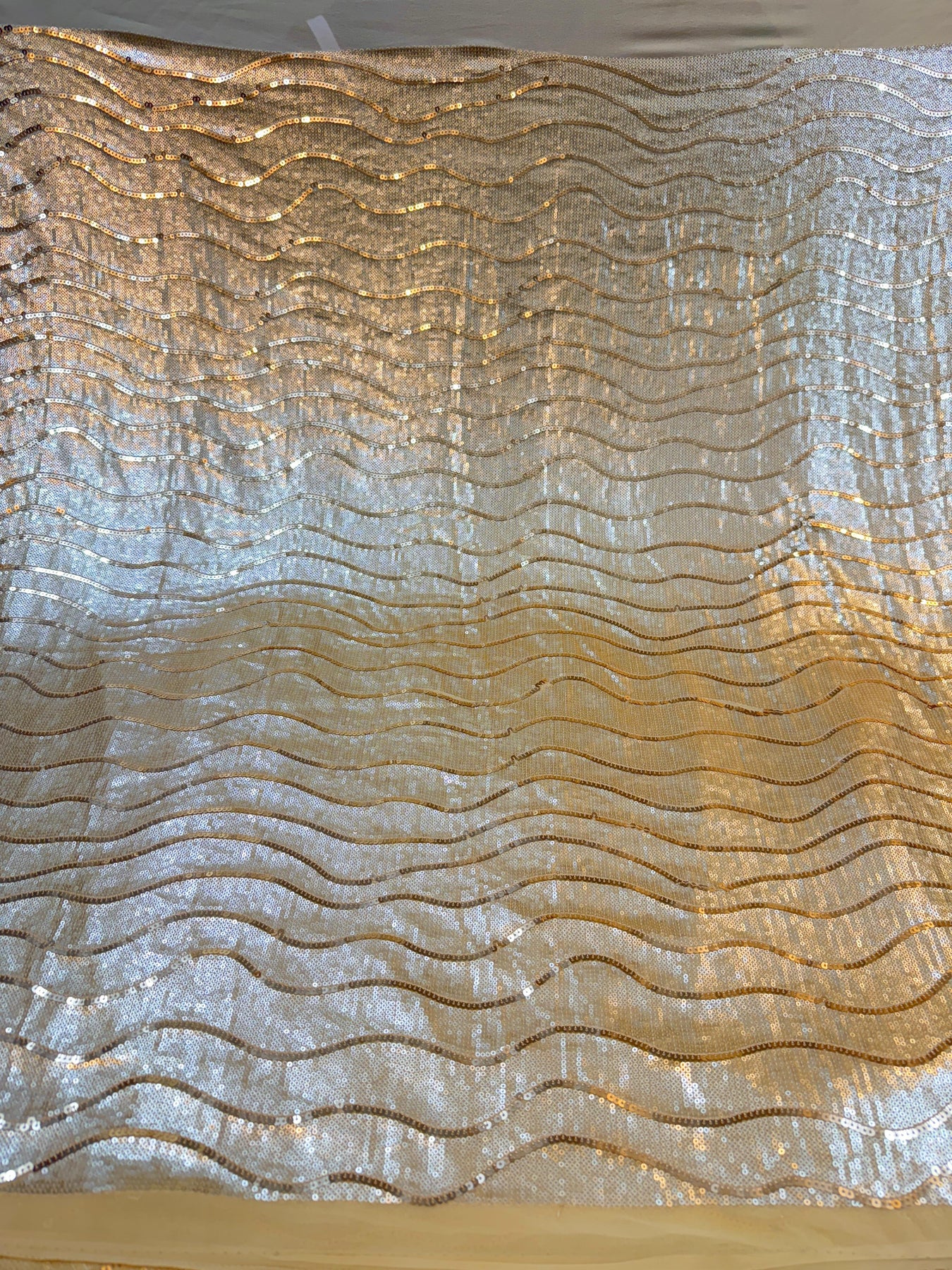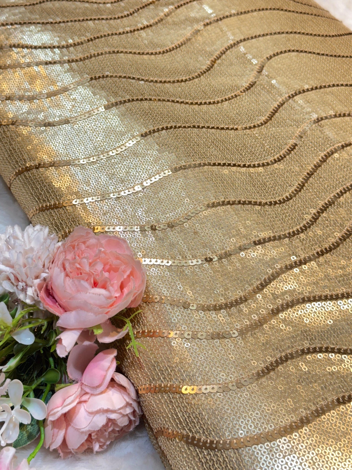 (Precut of 0.5 Meter) Georgette Flat Sequins Sheet Embroidery with wave Pattern 44 inch width