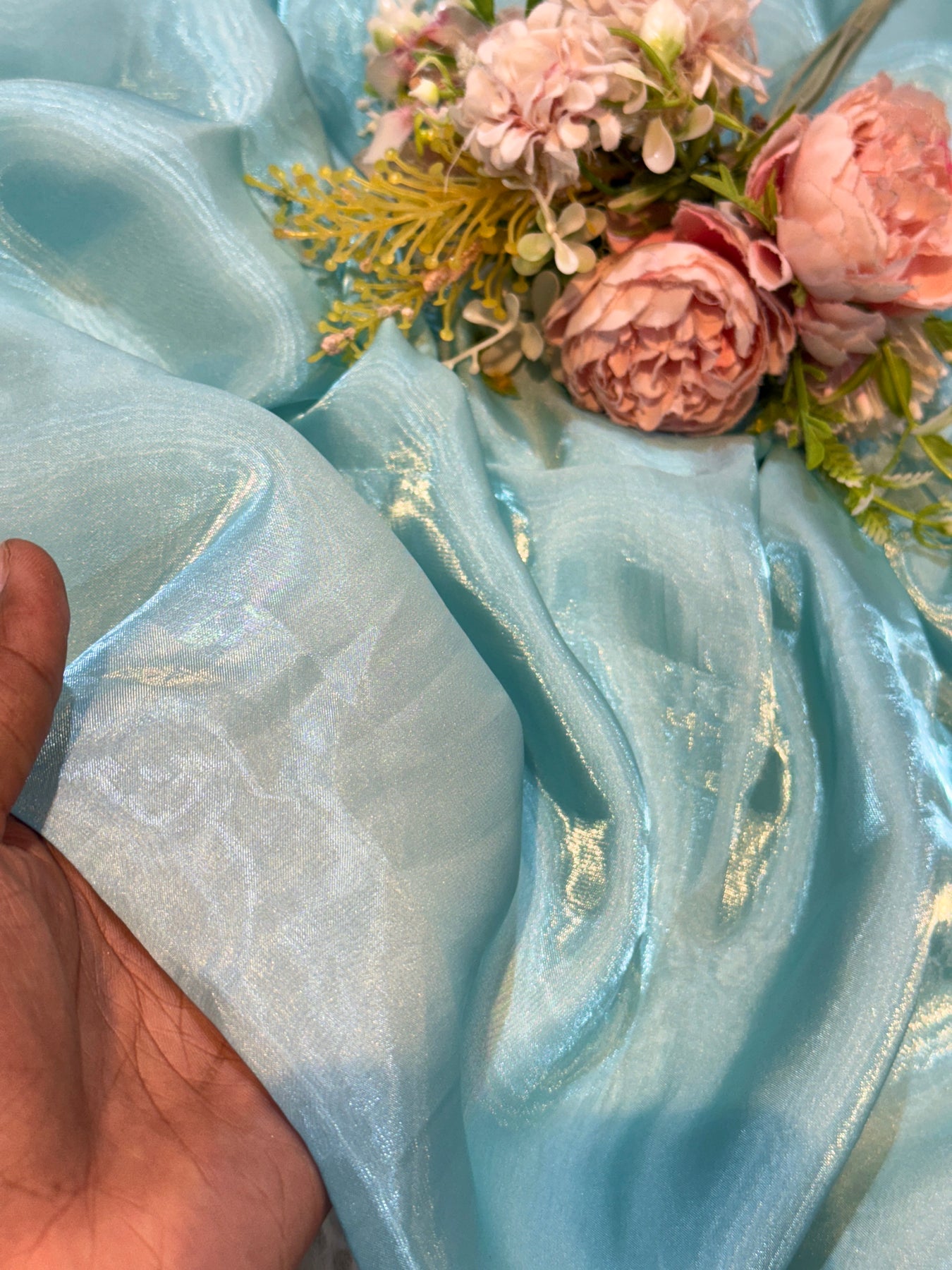 (Precut of 2.2 Meter) Sky Blue Original Imported Glass Tissue Fabric 54 inch width