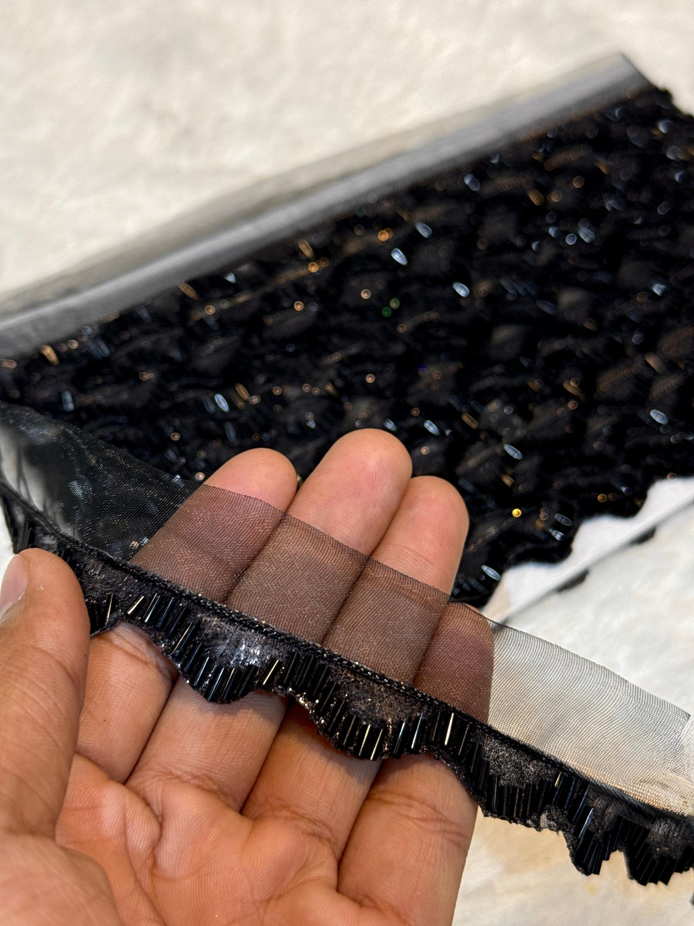 Elevate your textile designs with this premium lace border featuring intricate cutdana embellishment. This wholesale pack delivers 9 meters of versatile trim, perfect for embellishing dupattas, sarees, and custom garment construction. The delicate cutdana work adds sophisticated sparkle and dimension to any piece, while the quality lace ensures durability through wear and washing. Ideal for designers, tailors, and textile artisans seeking professional-grade embellishments that transform ordinary fabrics into statement pieces. Stock up on this essential design element for your collection.