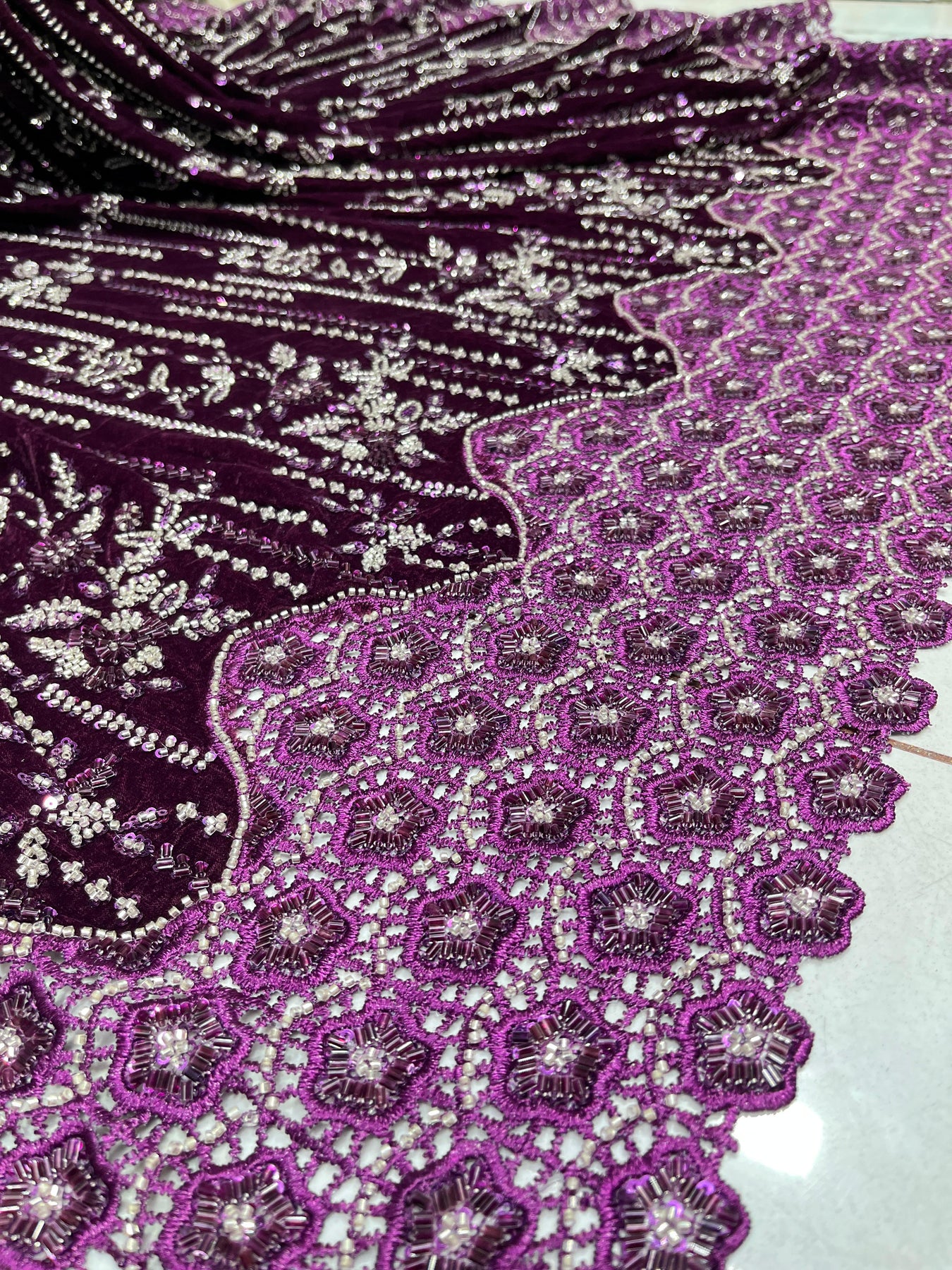 Imported Handwork Velvet Embroidery 50 inch width With Crochet Border