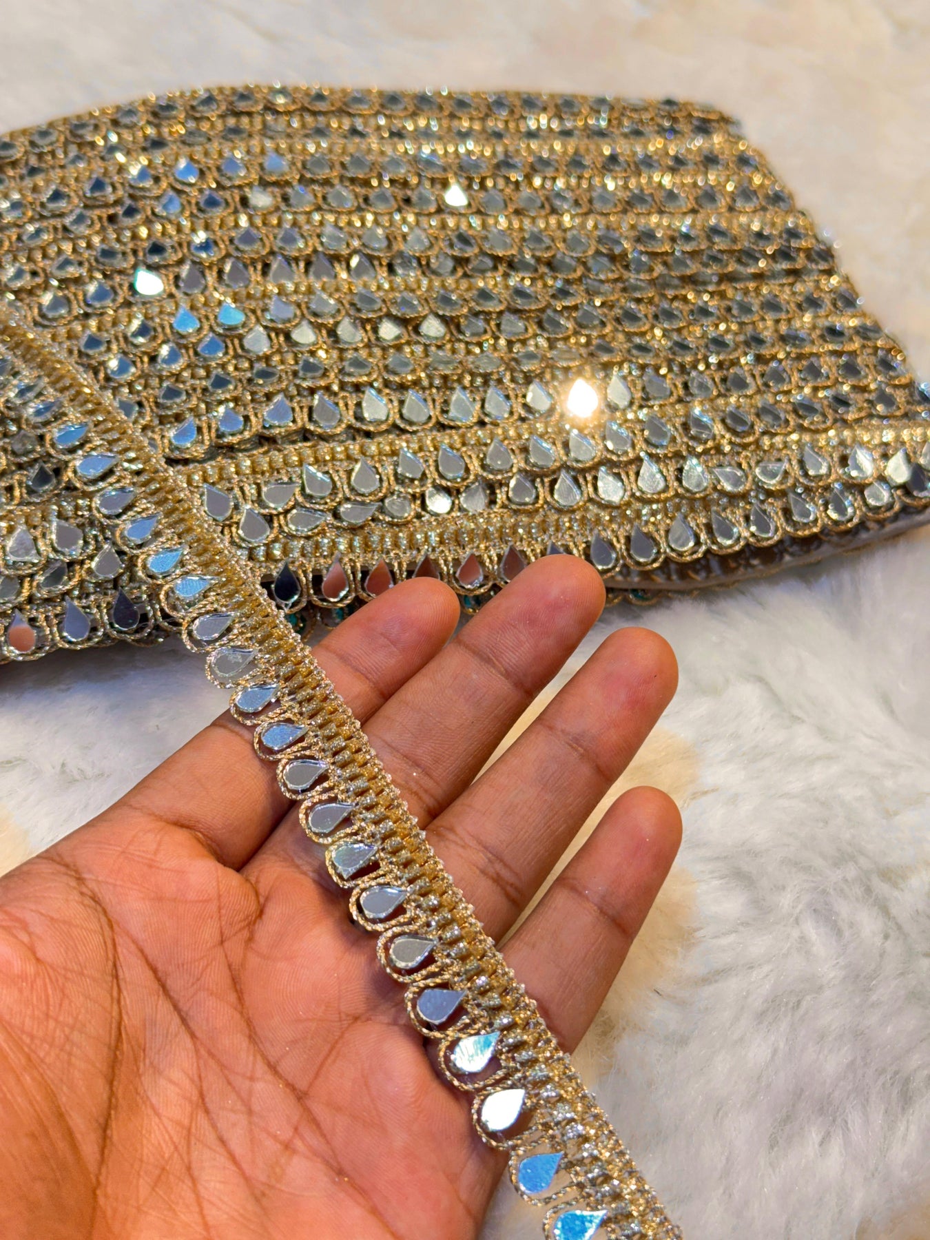 (Wholesale pack of 9 meter ) Lace Border with Mirror Handwork