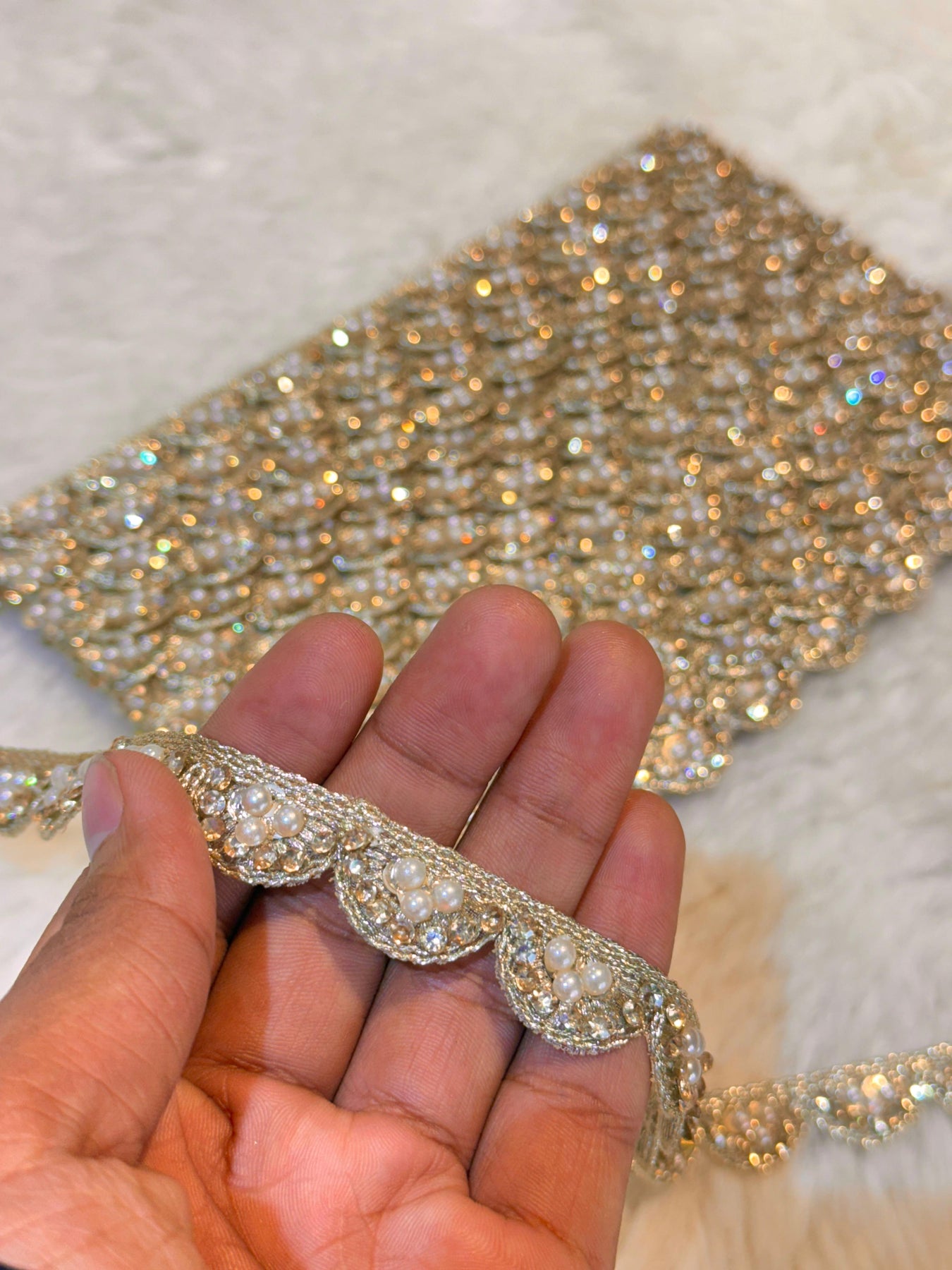 (Wholesale pack of 9 meter ) Lace Border With Stone, Sequins and Pearl Work