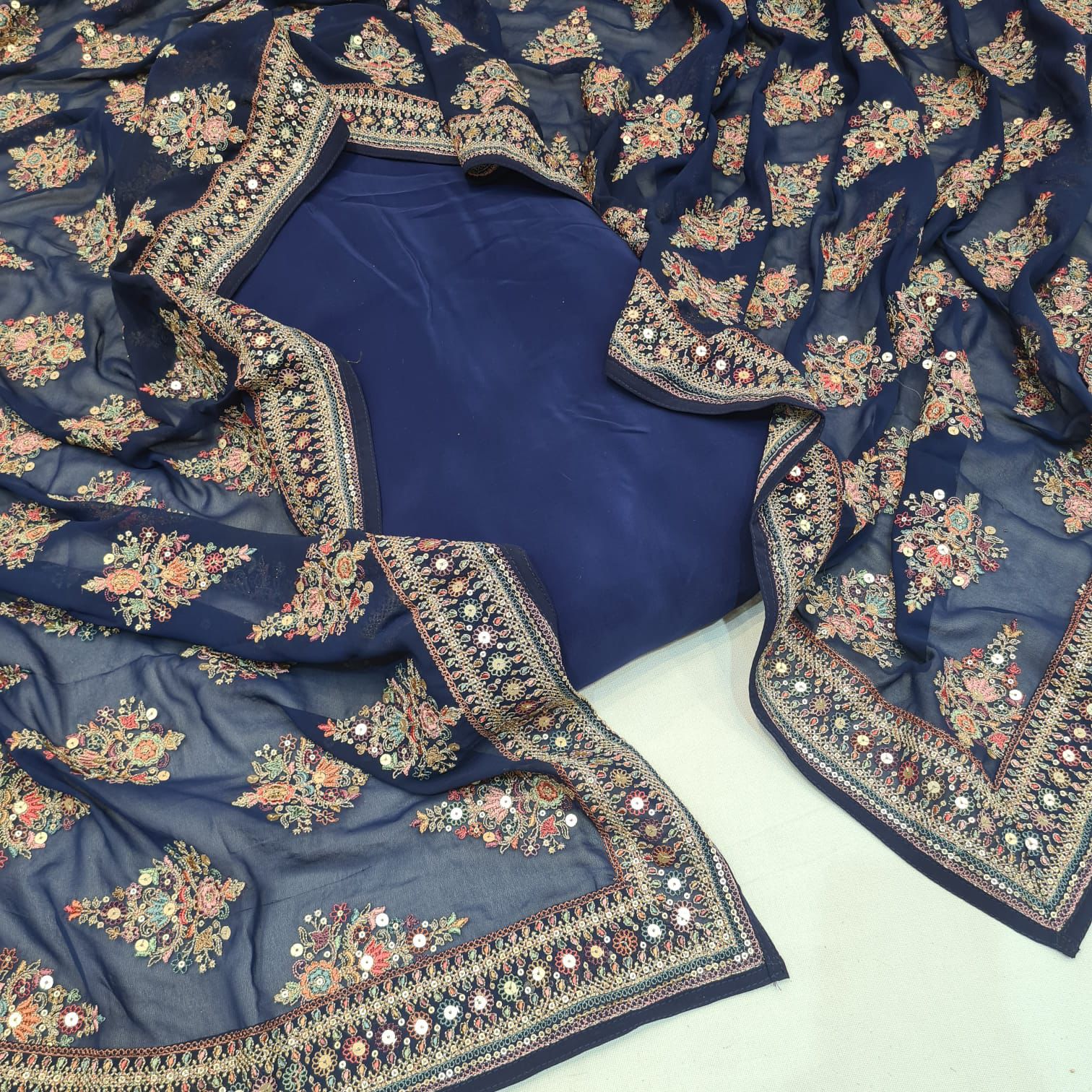 Combination Suit Sets of Georgette Premium Kashmiri Dupatta And Plain crape Suit