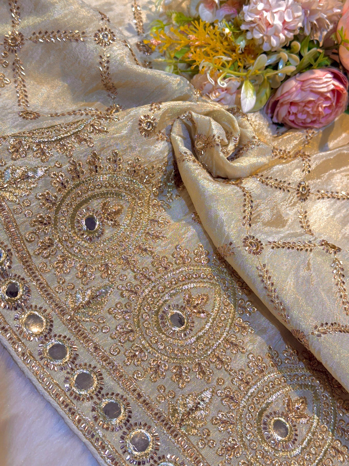 Mehz pro Zari Tissue Handwork Faux mirror Dyeable Dupatta (2.40 meter length)