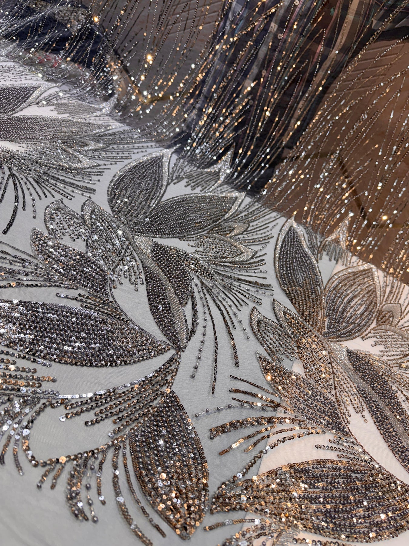 Elevate your fashion game with our Mahi Grey Handwork Net Embroidery fabric. With a width of 54 inches, it's perfect for creating stunning dresses, gowns, lehengas, sarees, and blouses. The intricate handwork and delicate net material will add a touch of elegance to your wardrobe. Upgrade your style with this versatile fabric. |