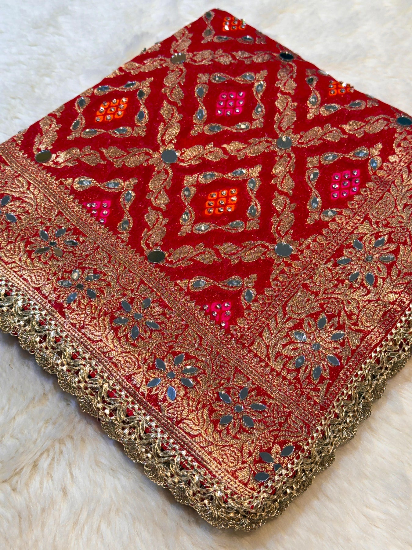 Red Sheeshmahal Pure Georgette Handwork Dupatta 2.35 Meter Length