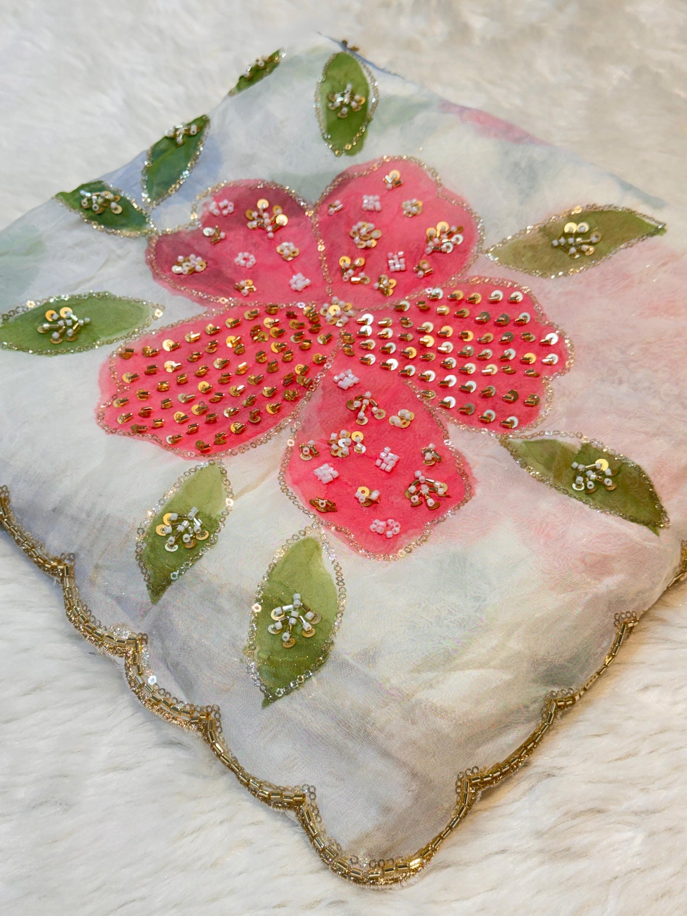 Ayesha white Pure Organza Handwork Dupatta With Floral Work and Four Side Scalloped Borders 2.40 meter length