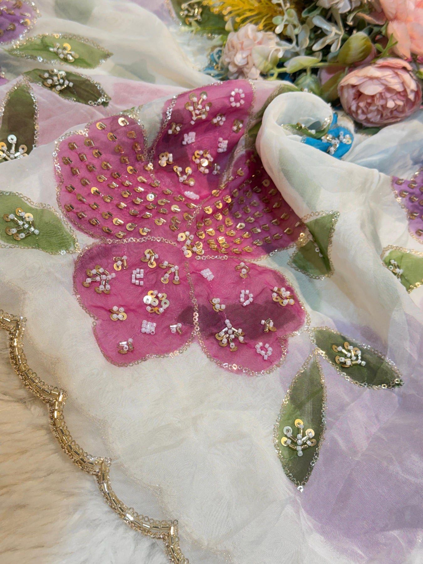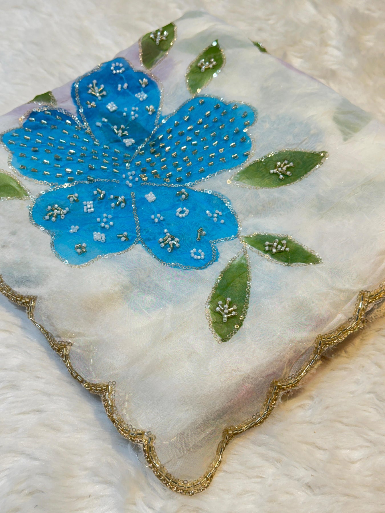 Ayesha white Pure Organza Handwork Dupatta With Floral Work and Four Side Scalloped Borders 2.40 meter length