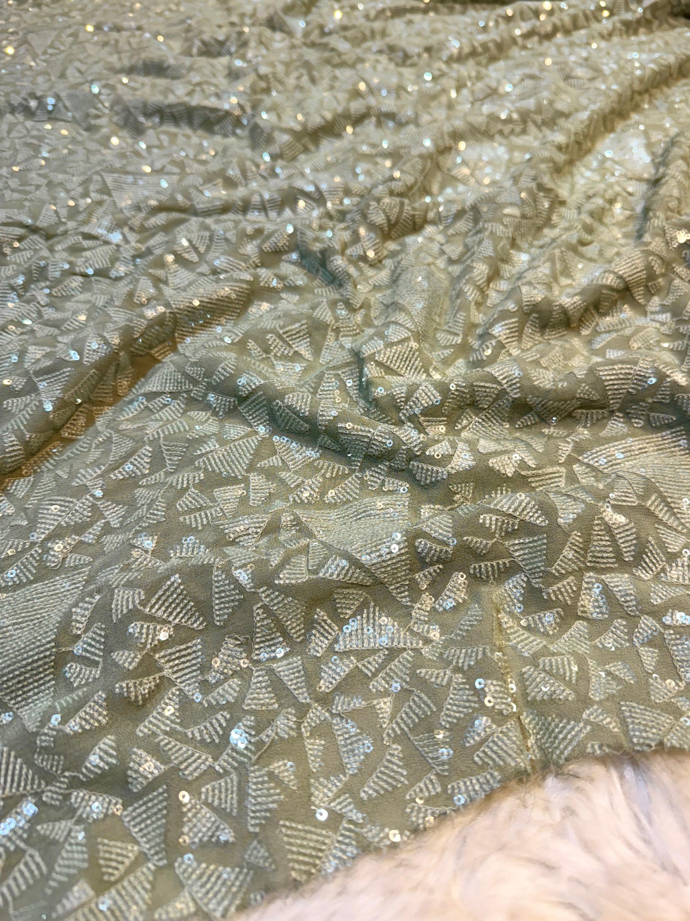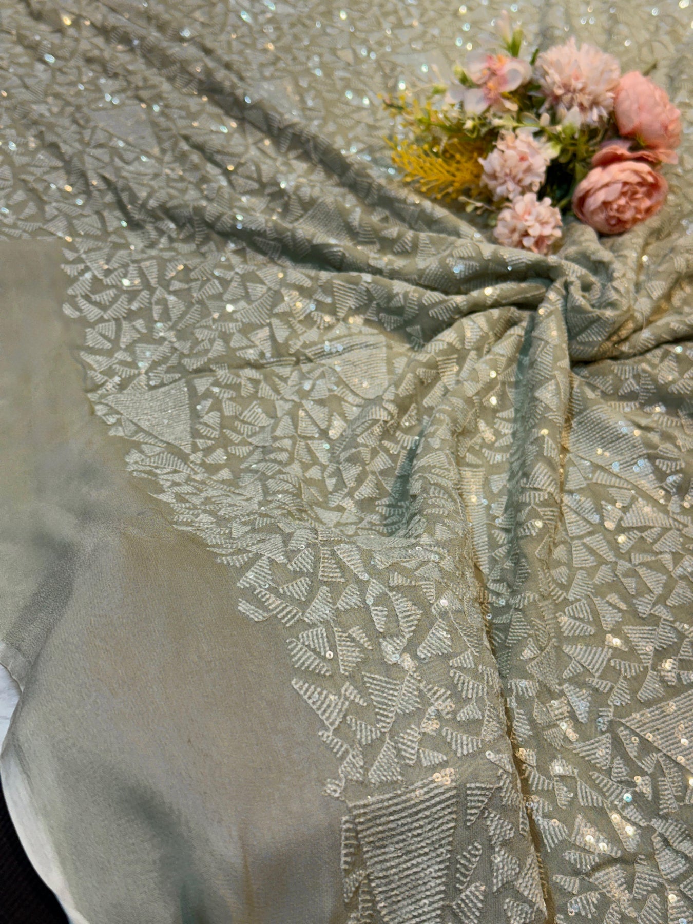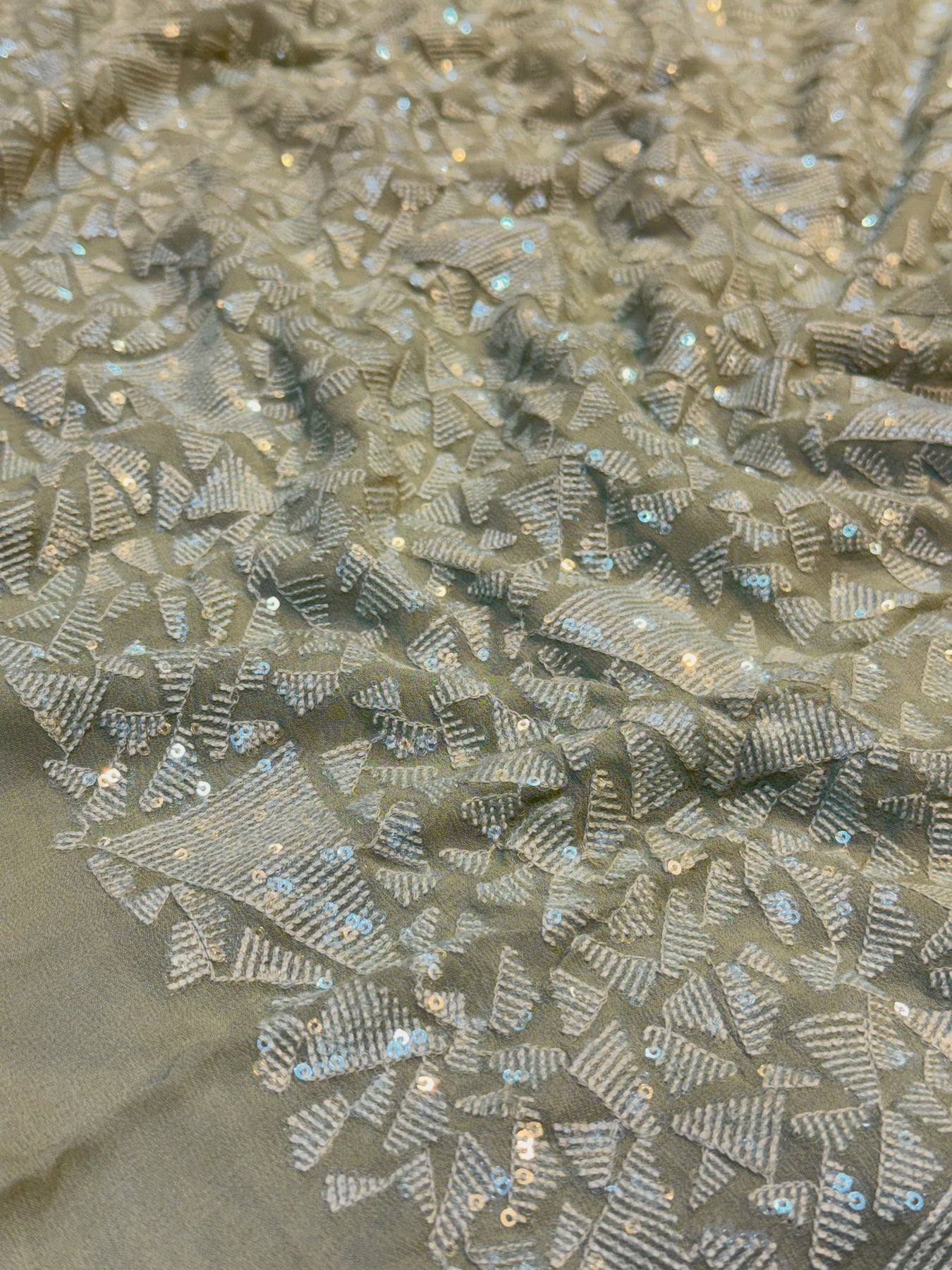 Dusty Green Georgette Prism Thread And Water Sequins Embroidery 44 inch width ( Shade - 791 More ) (P)