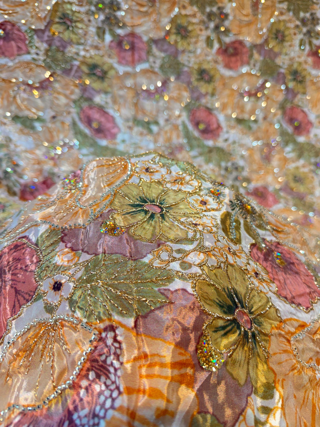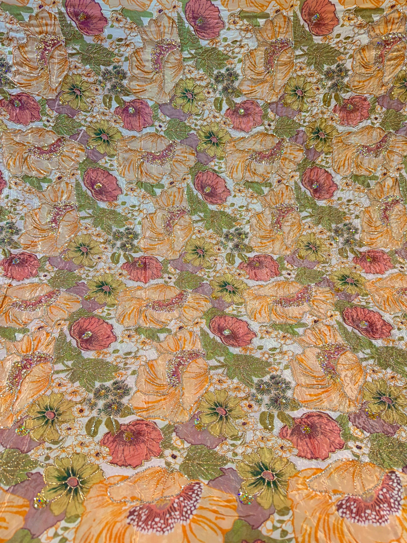 Luxury Crape Floral Print Embroidery with Handwork 44 inch width