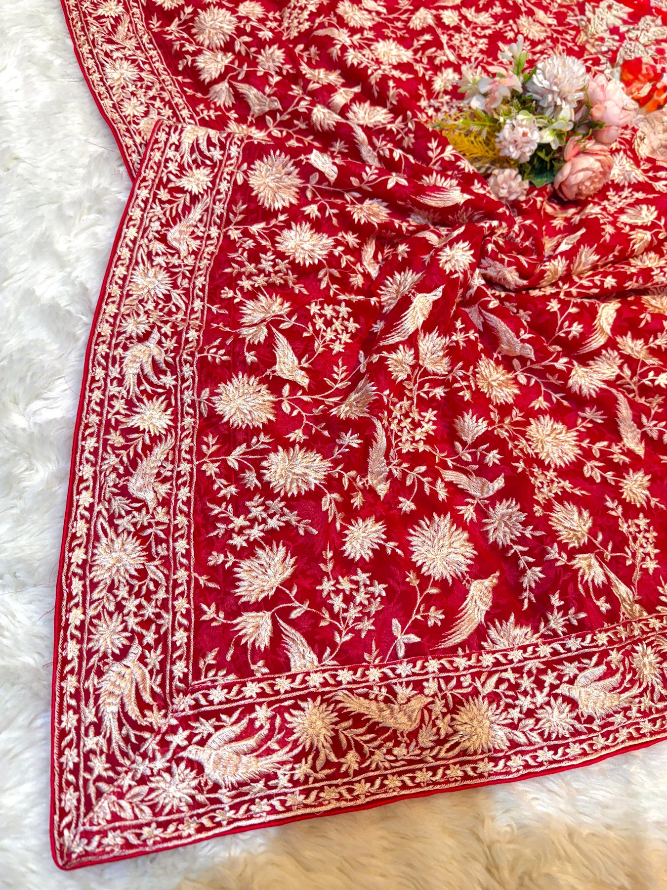 Magenta Parsi Gara Georgette Dupatta Base 2.40 meter length Limited Edition