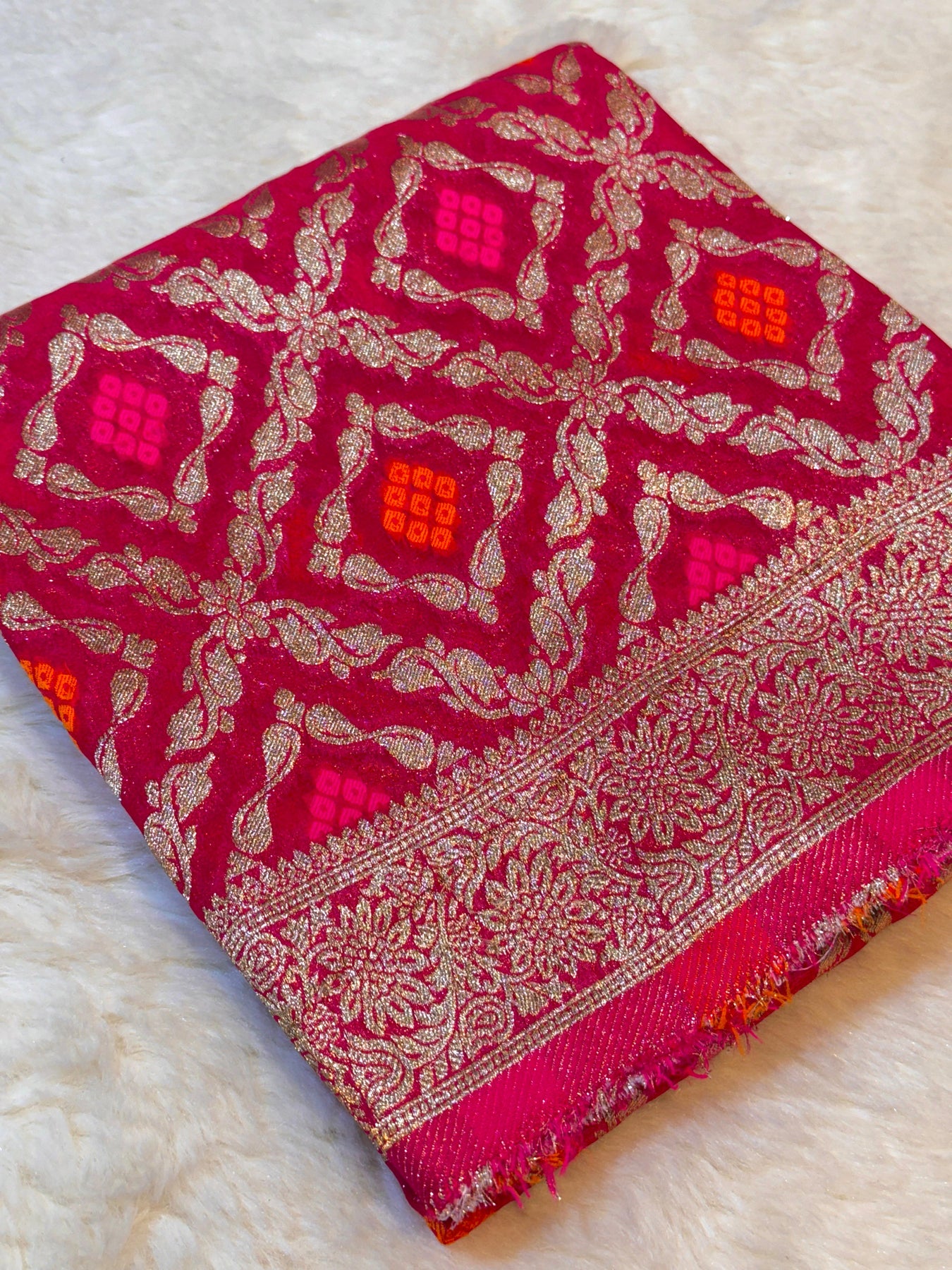 Hot Pink Pure Viscose Georgette Dupatta With Bandhej Weave 2.40 Meter Length 36 Inch Width