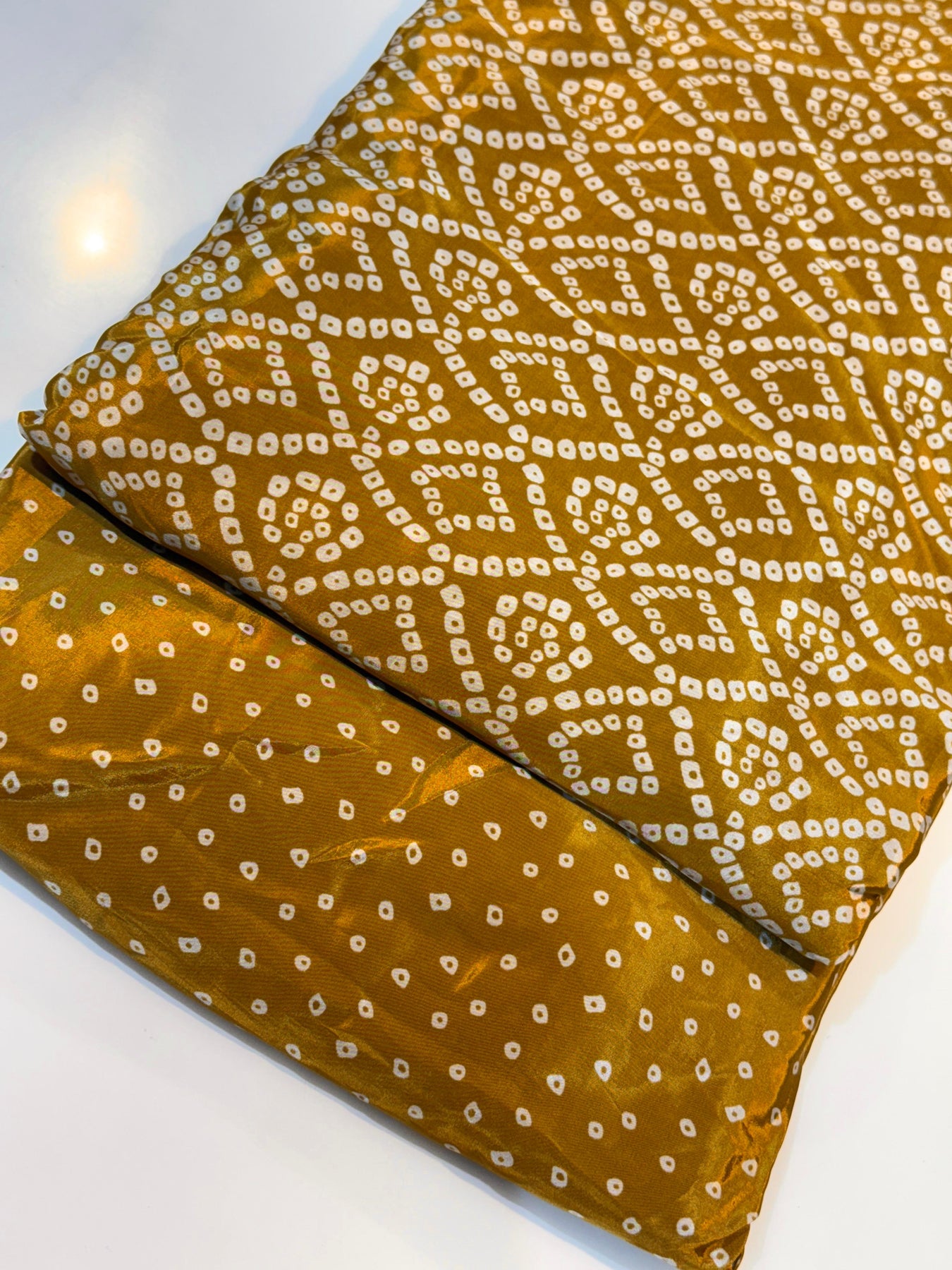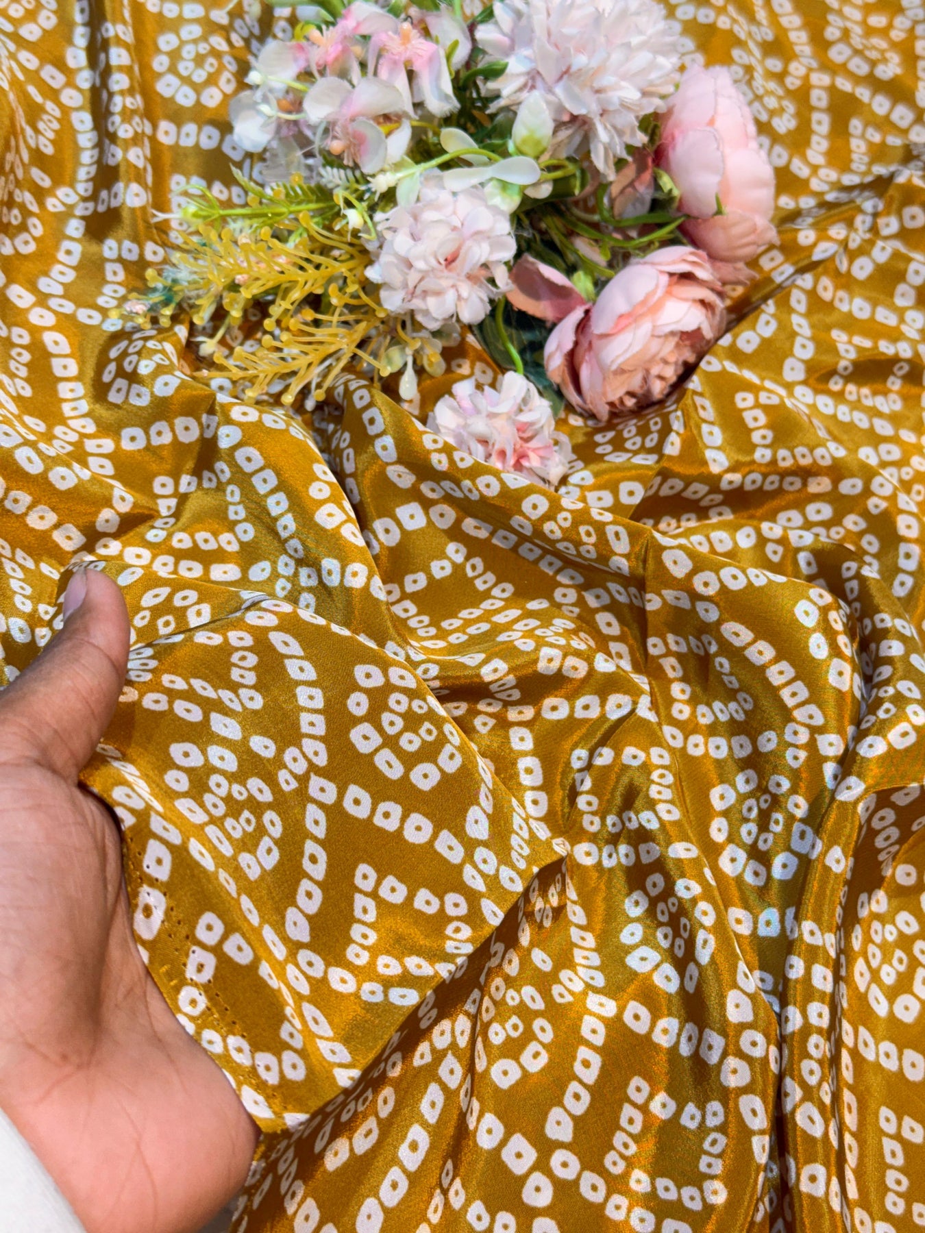 Mehndi Green Original Pure Crape Viscose Bandhej Prints (Shade -M ) 44 inch width