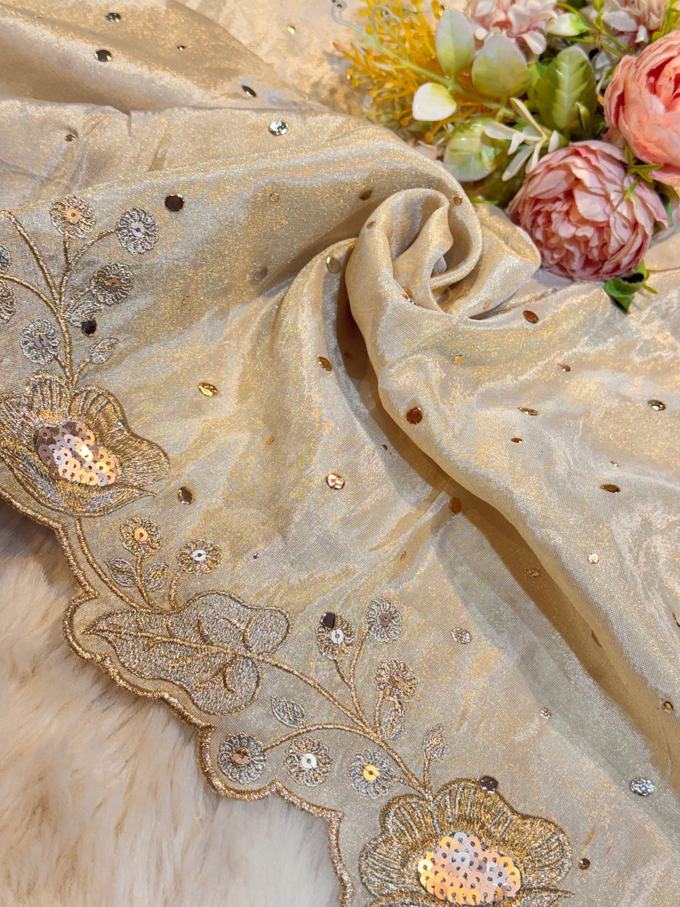 Mehz Zari Tissue Handwork Dyeable Dupatta (2.40 meter length)