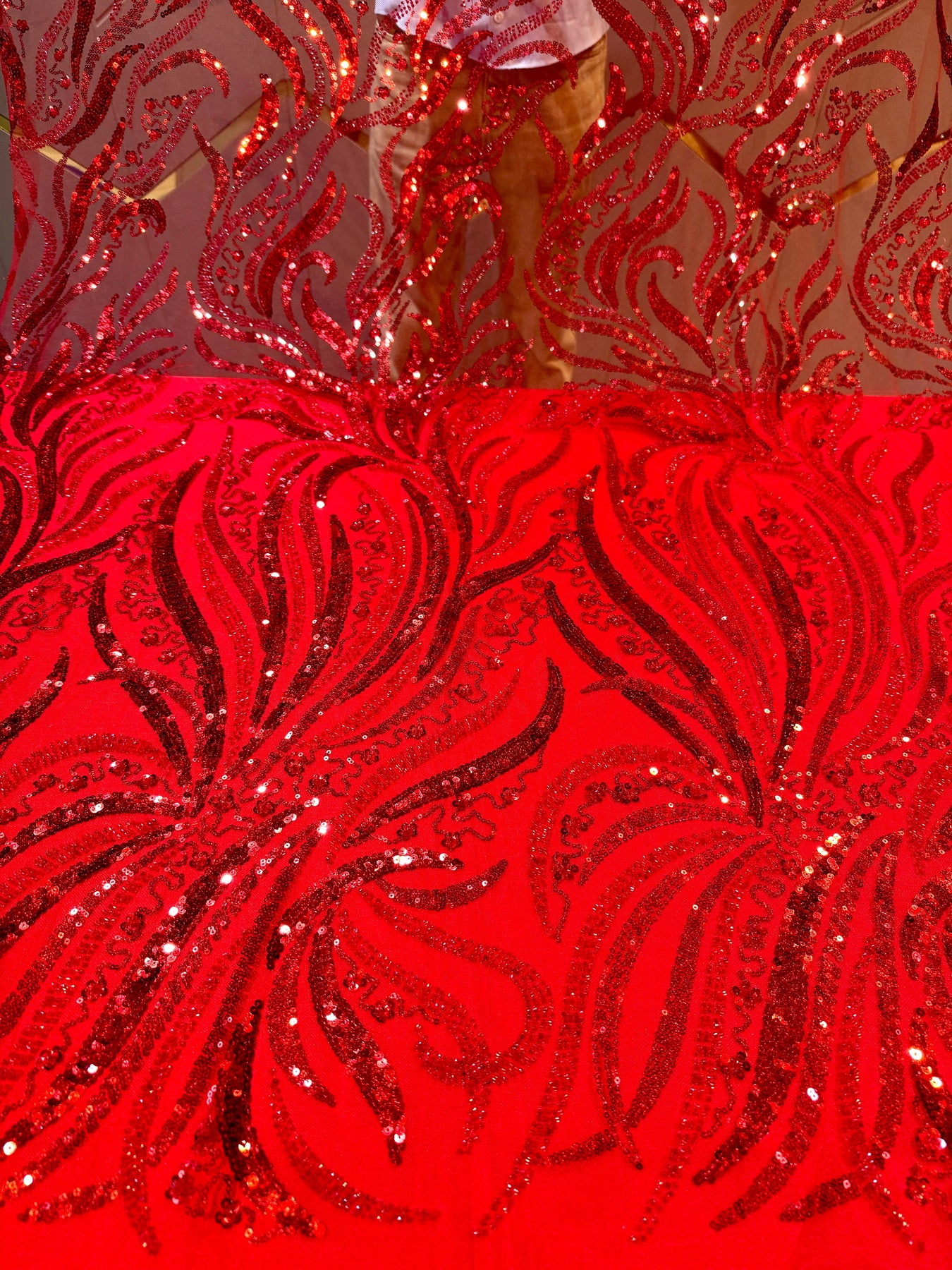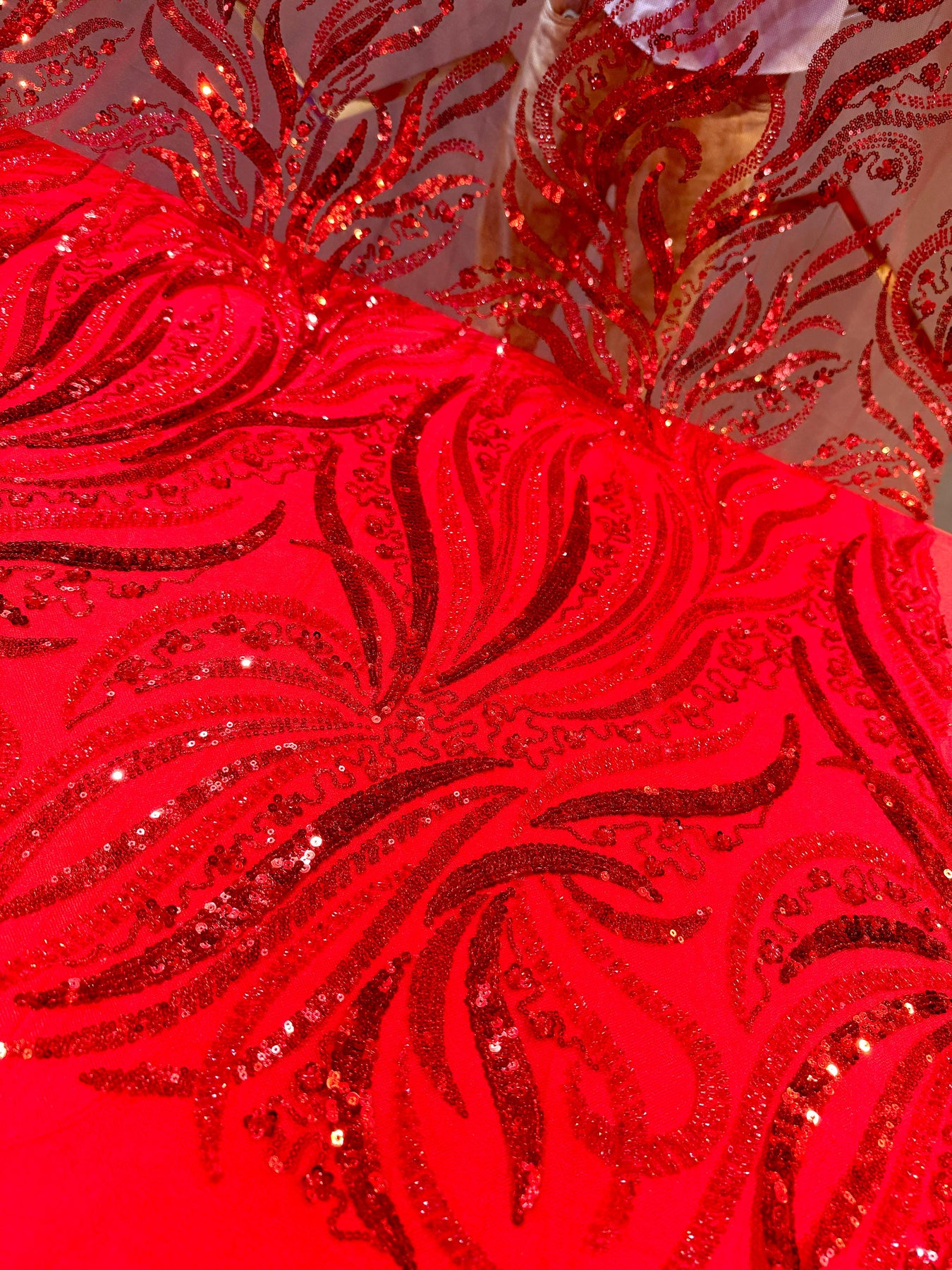 Minal Red Handwork Net Fabric features intricate embroidery accented with pearls and cutdana work, creating an elegant, textured surface. With a generous 54-inch width, it is perfectly suited for crafting sophisticated dresses, gowns, and lehengas. This fabric combines delicate artistry with versatility, enhancing your designer creations with refined detail and a luxurious feel. |