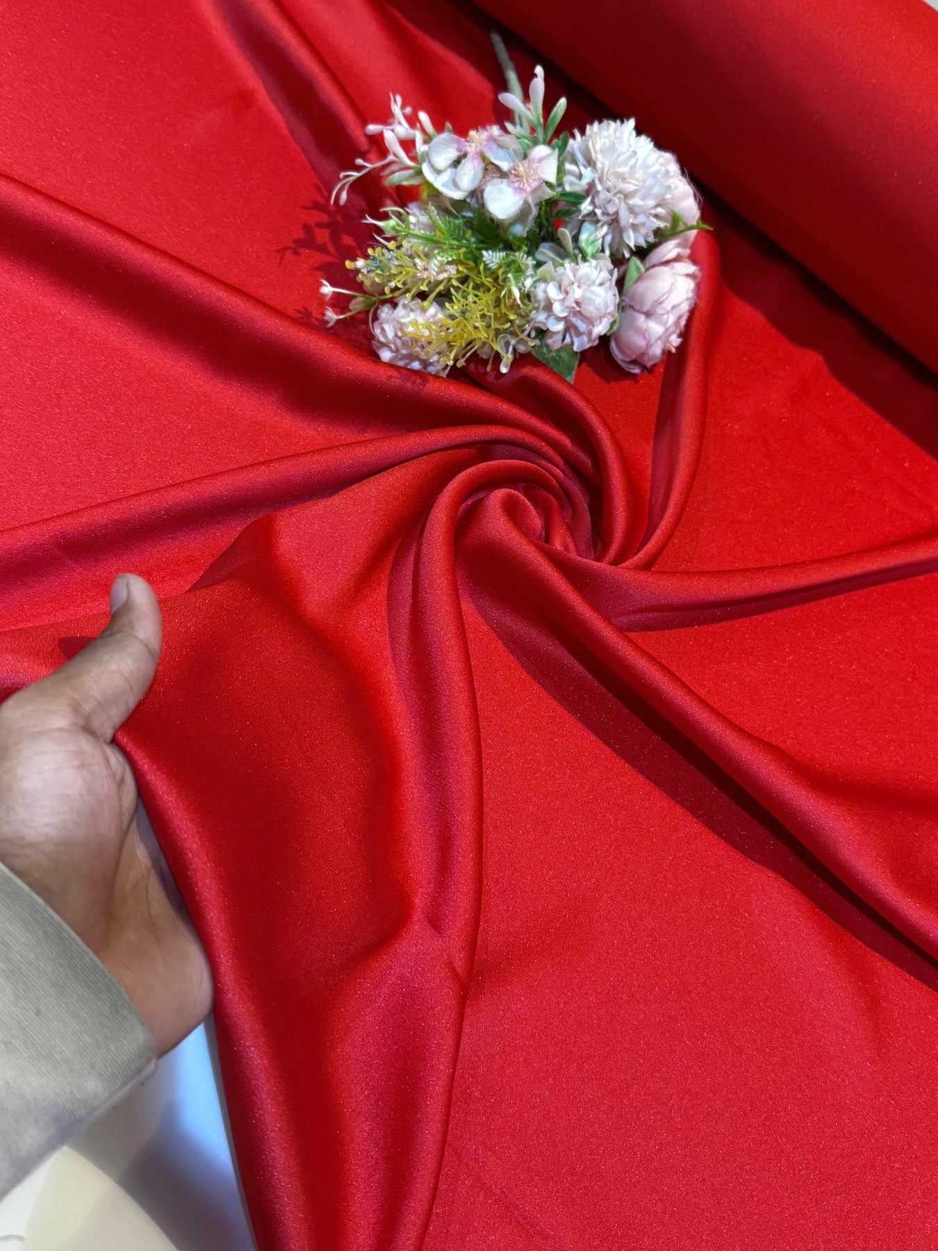 Red Original Imported Candy Crape Solid Colors For Making English Gown 54 inch width (Shade- D7)