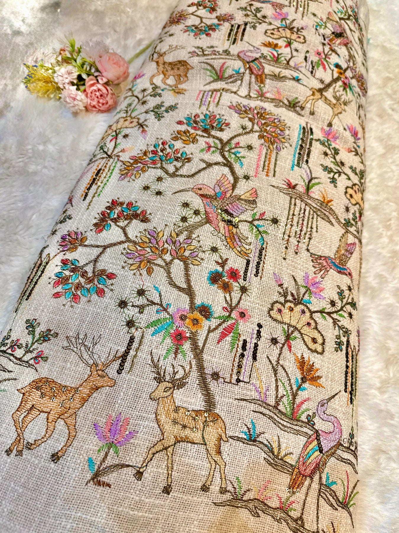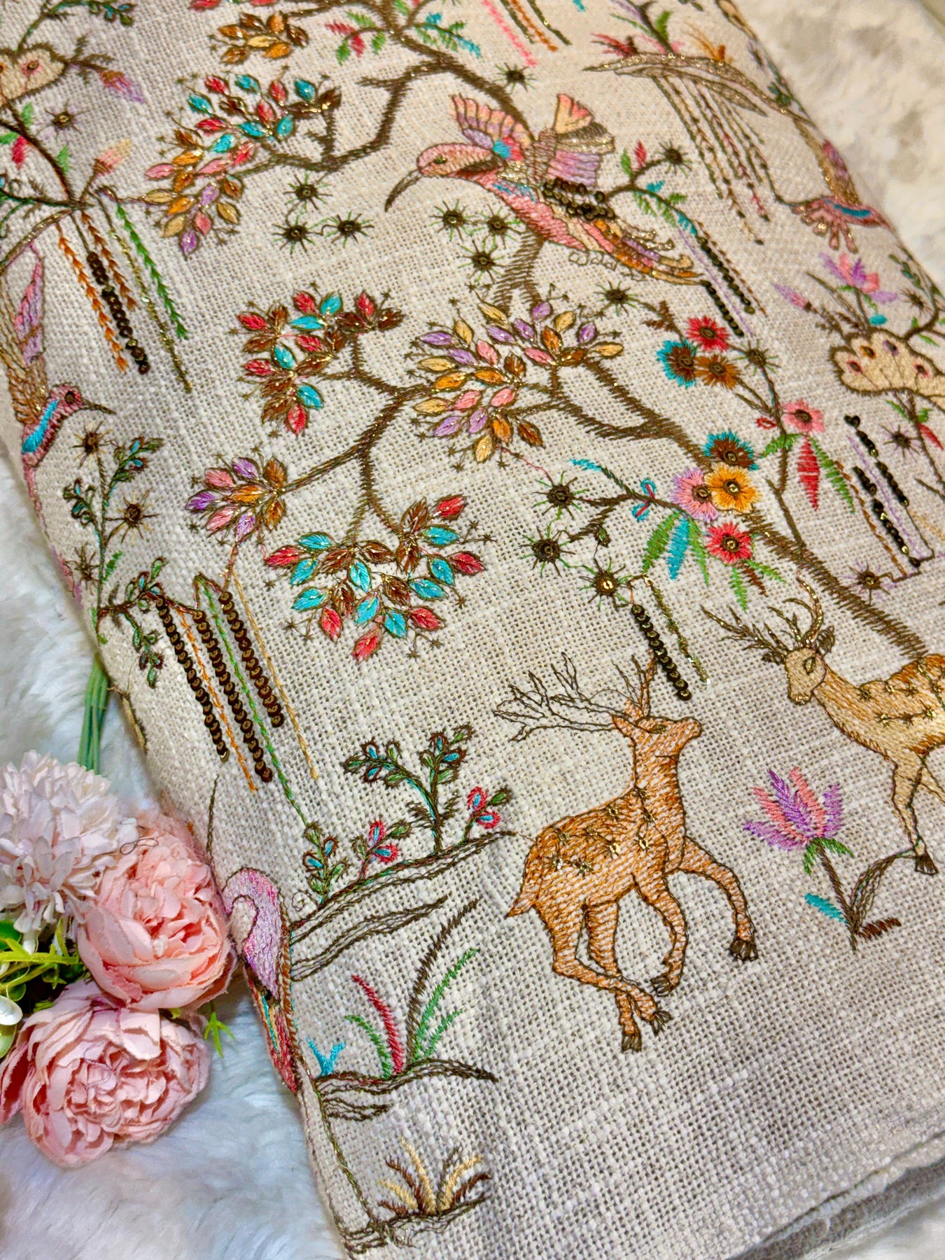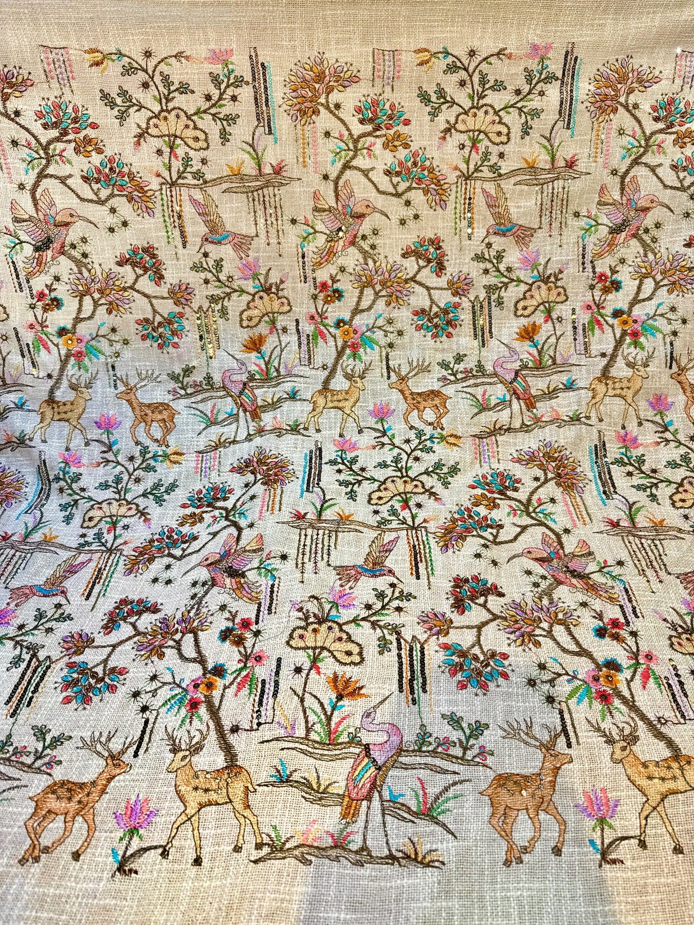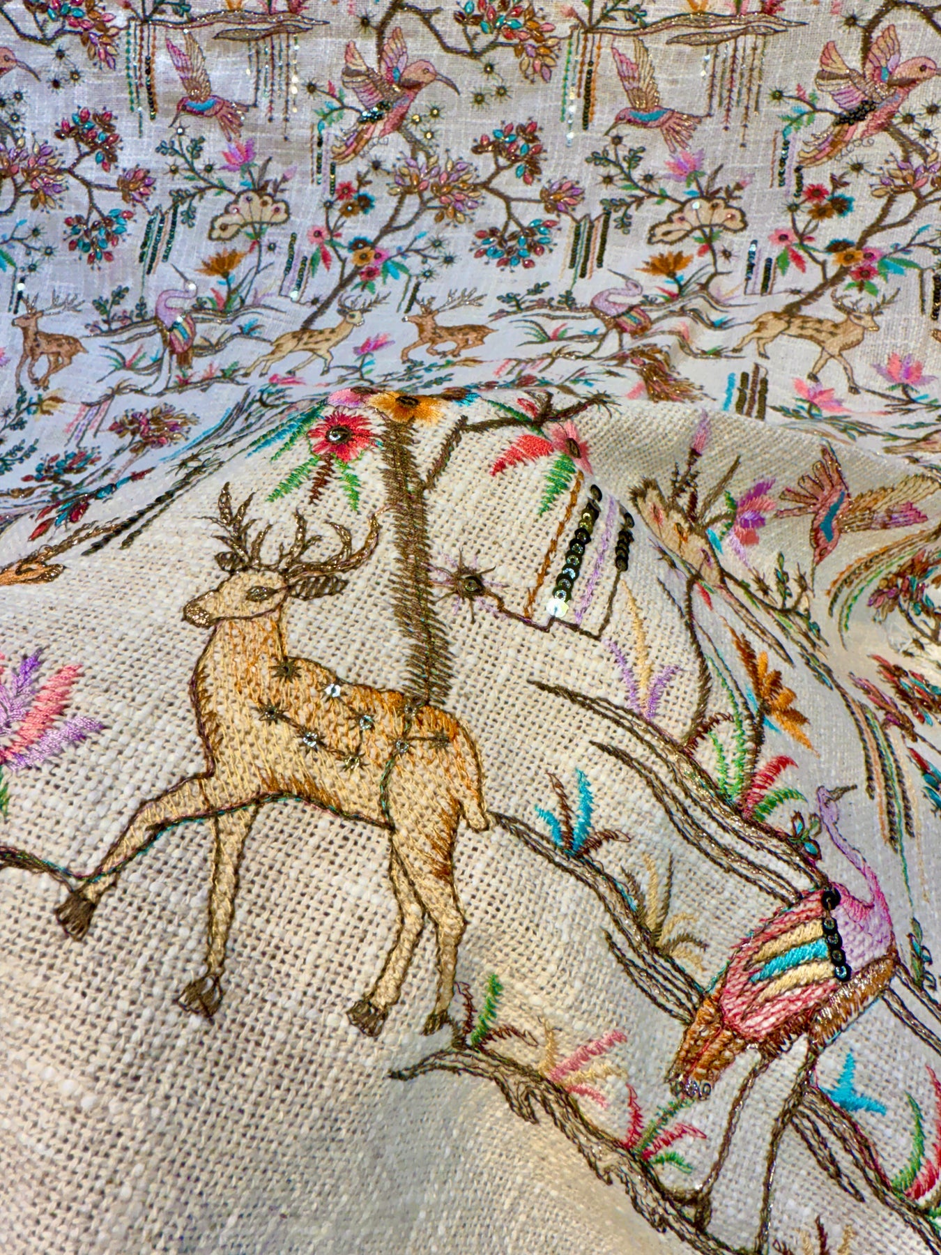 Original Jute Thread And Sequins Embroidery Bird Pattern 44 inch width