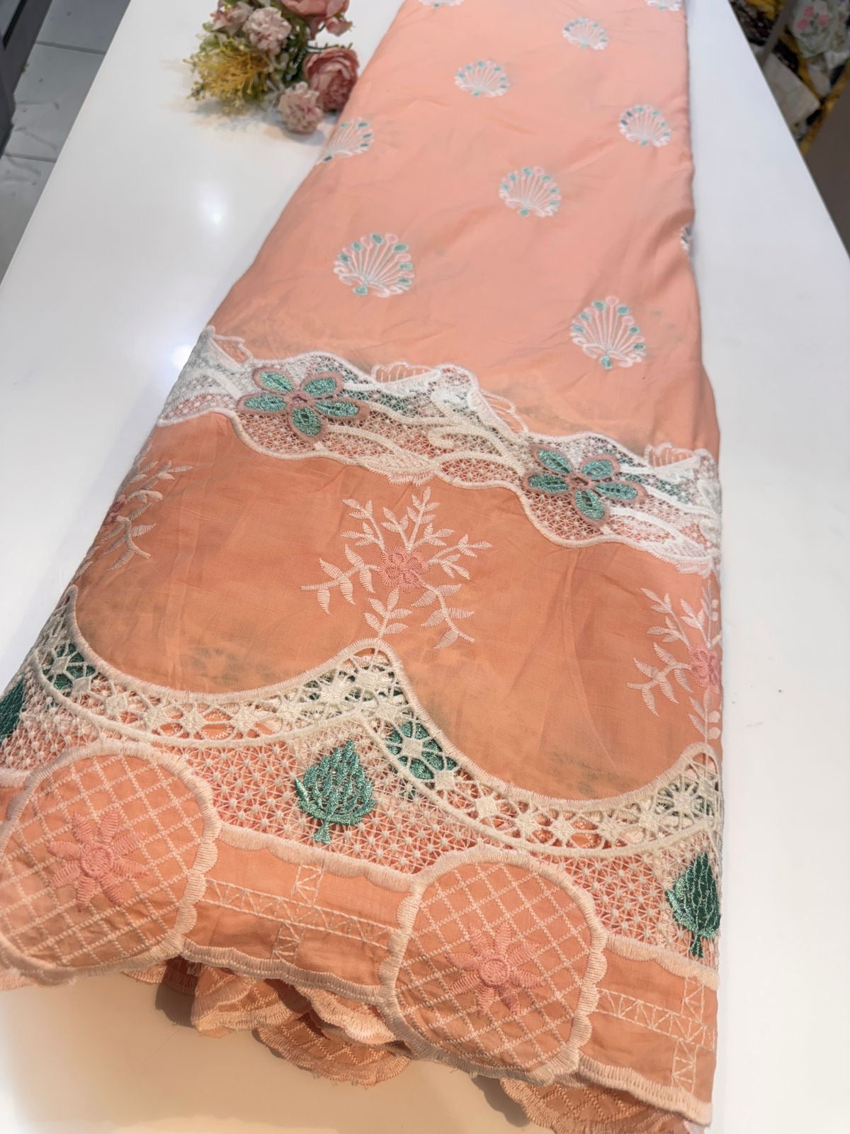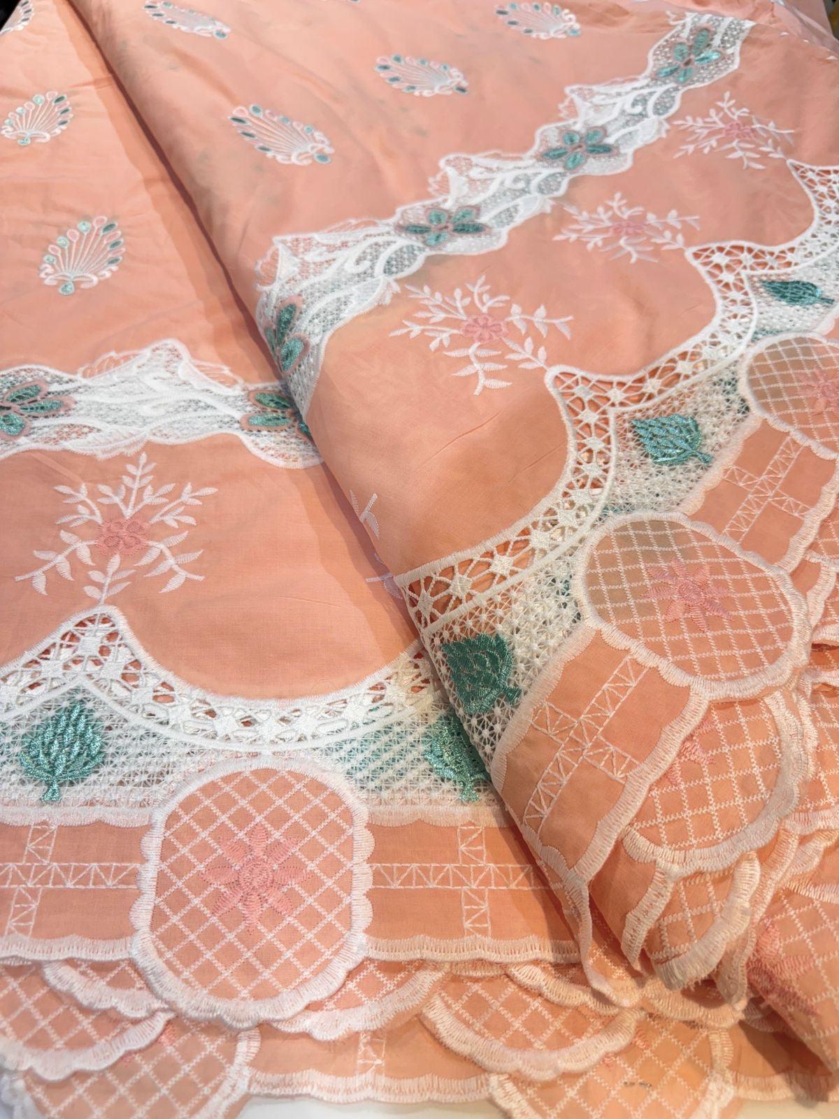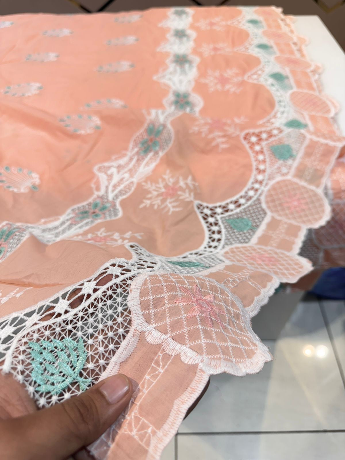Peach Pure Cotten Chikankari Embroidery with Cutwork Daaman 50 Inch Width