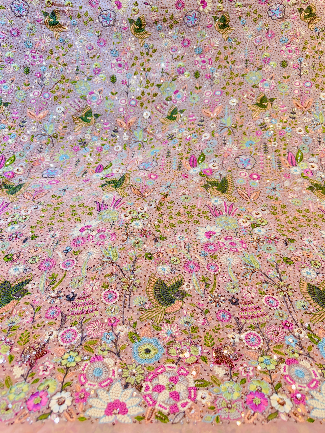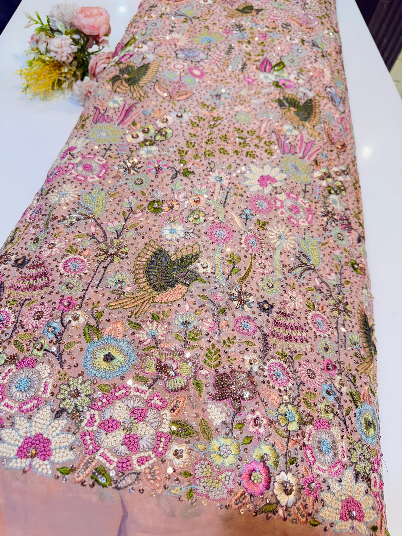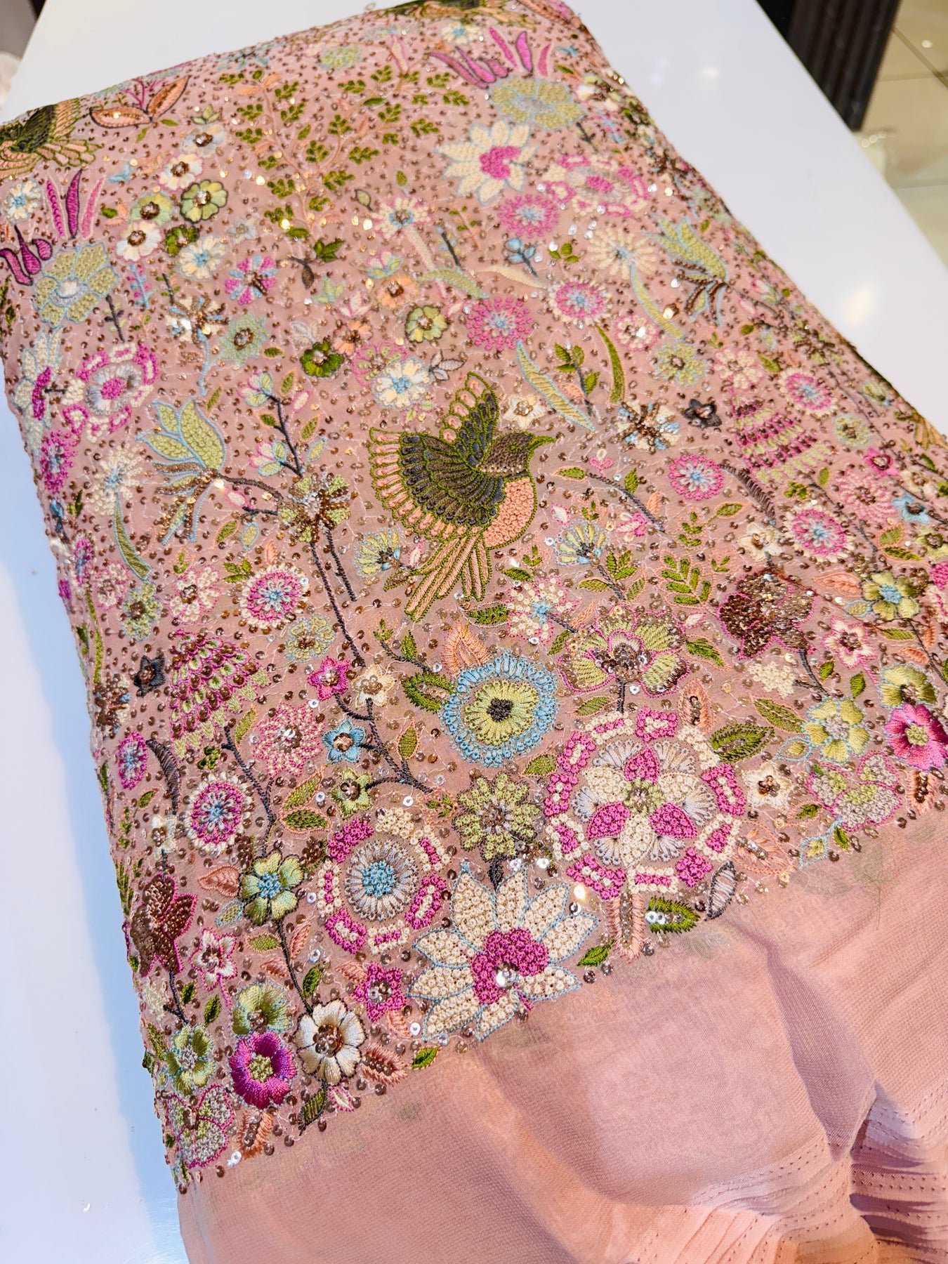 Pink  Pure Georgette Kashmiri Thread Embroidery 48 inch width Swan Collection Summer Ready