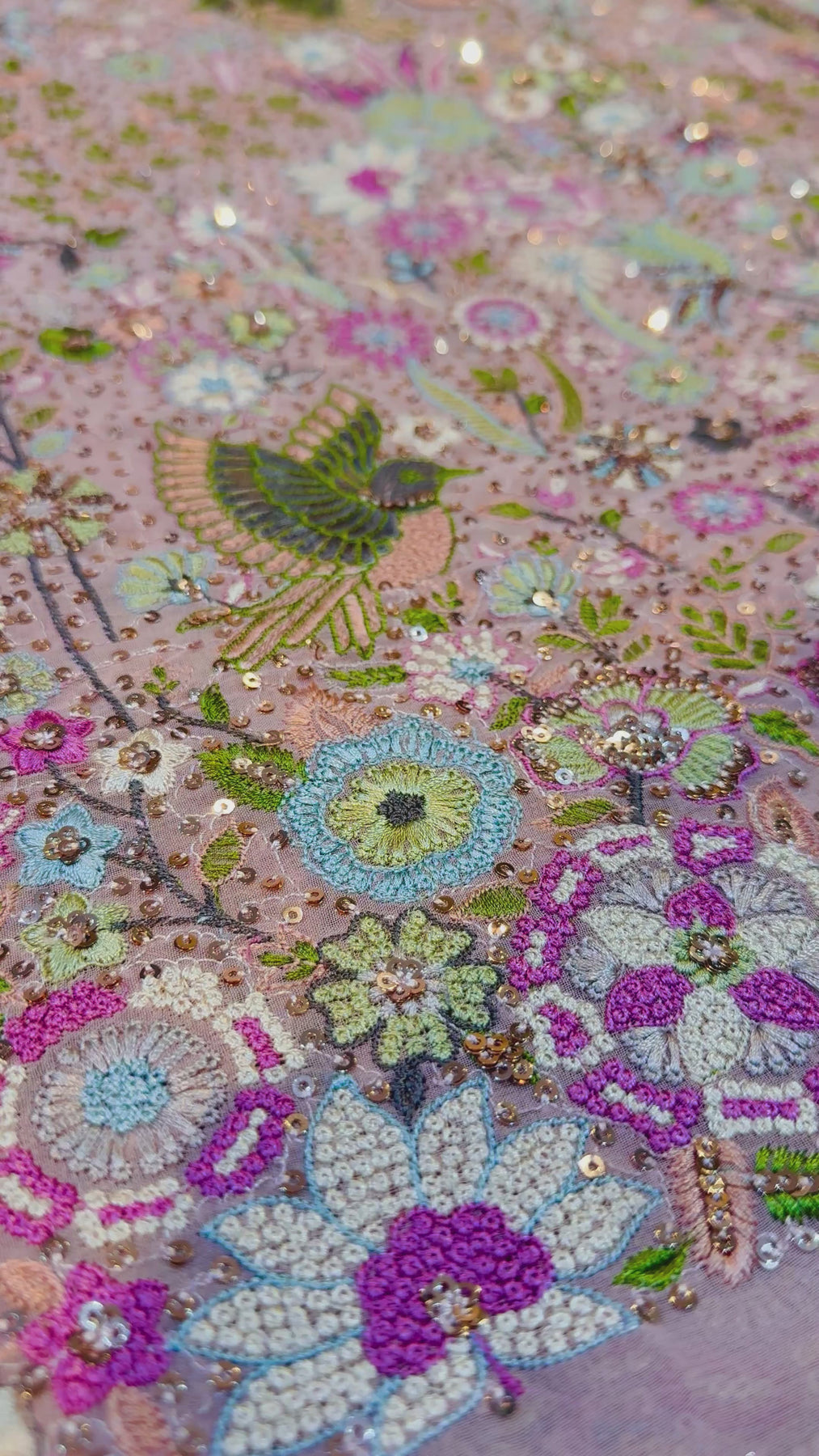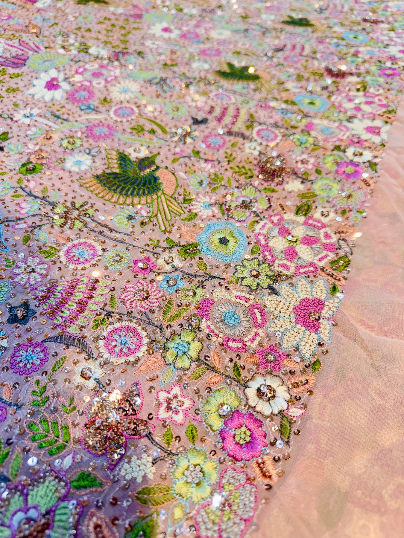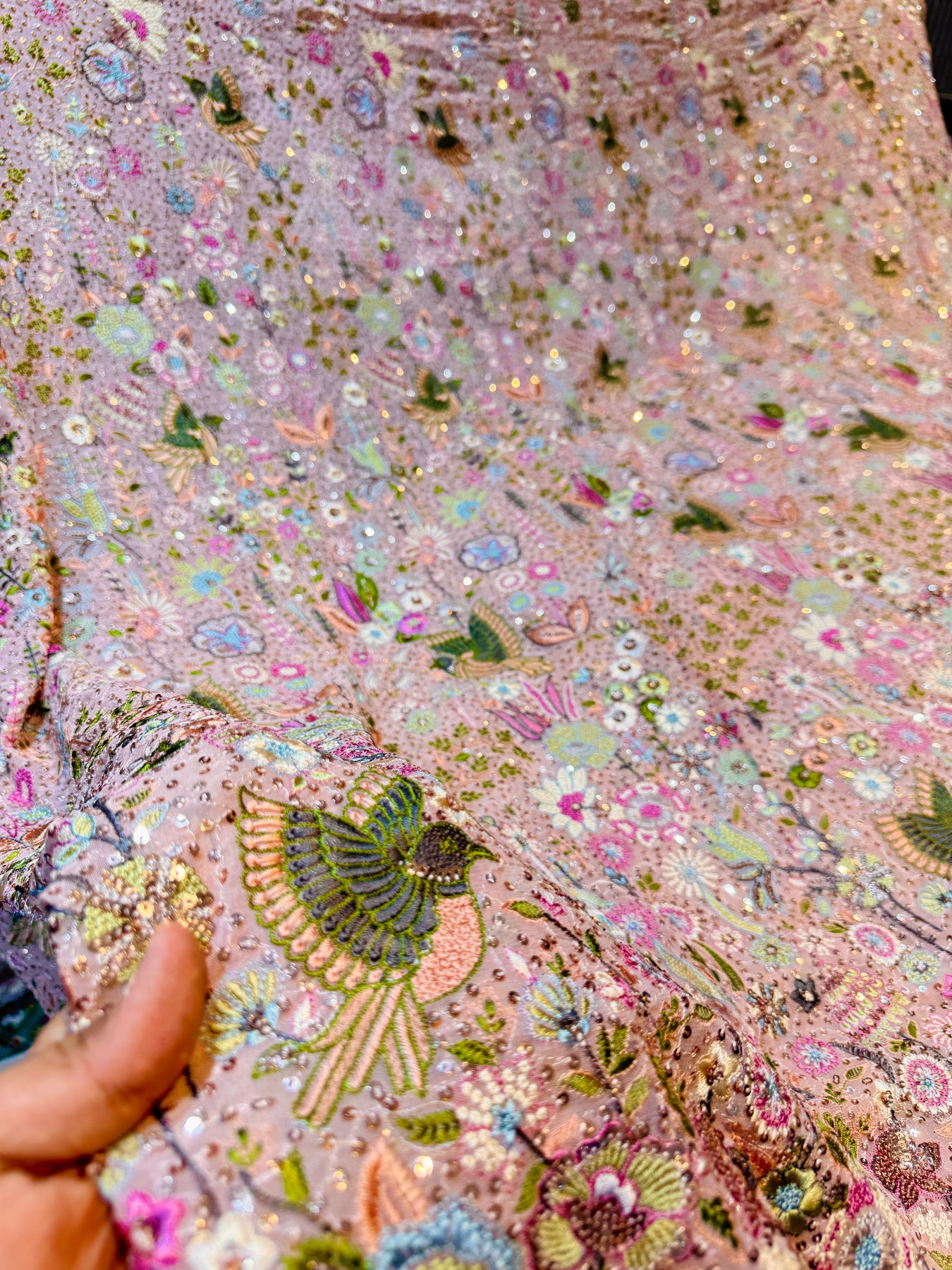 Pink  Pure Georgette Kashmiri Thread Embroidery 48 inch width Swan Collection Summer Ready