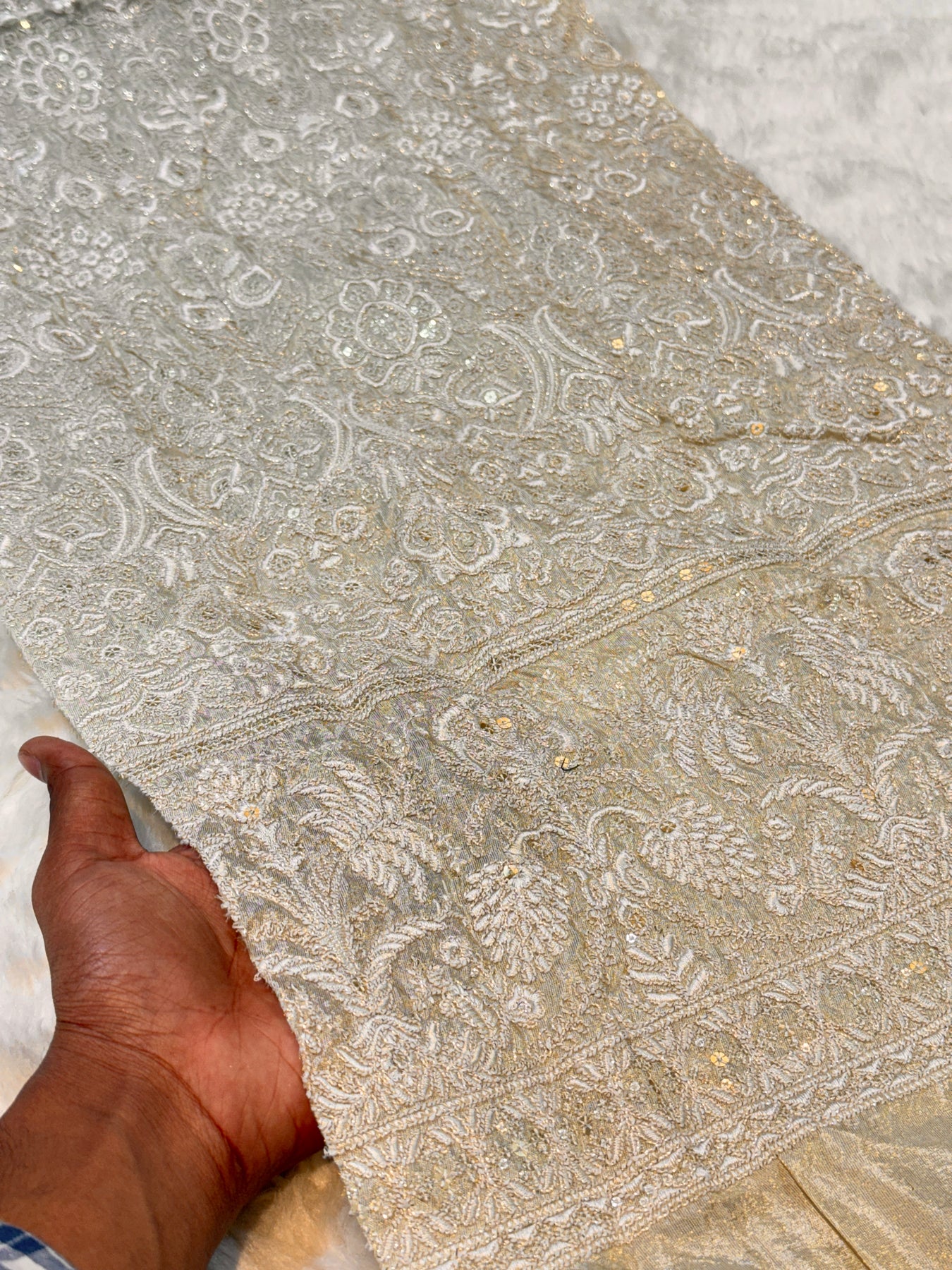 (Precut of 0.40 Meter) Pure Zari Tissue Handwork Embroidery with Sequins and Threadwork 44 Inch width