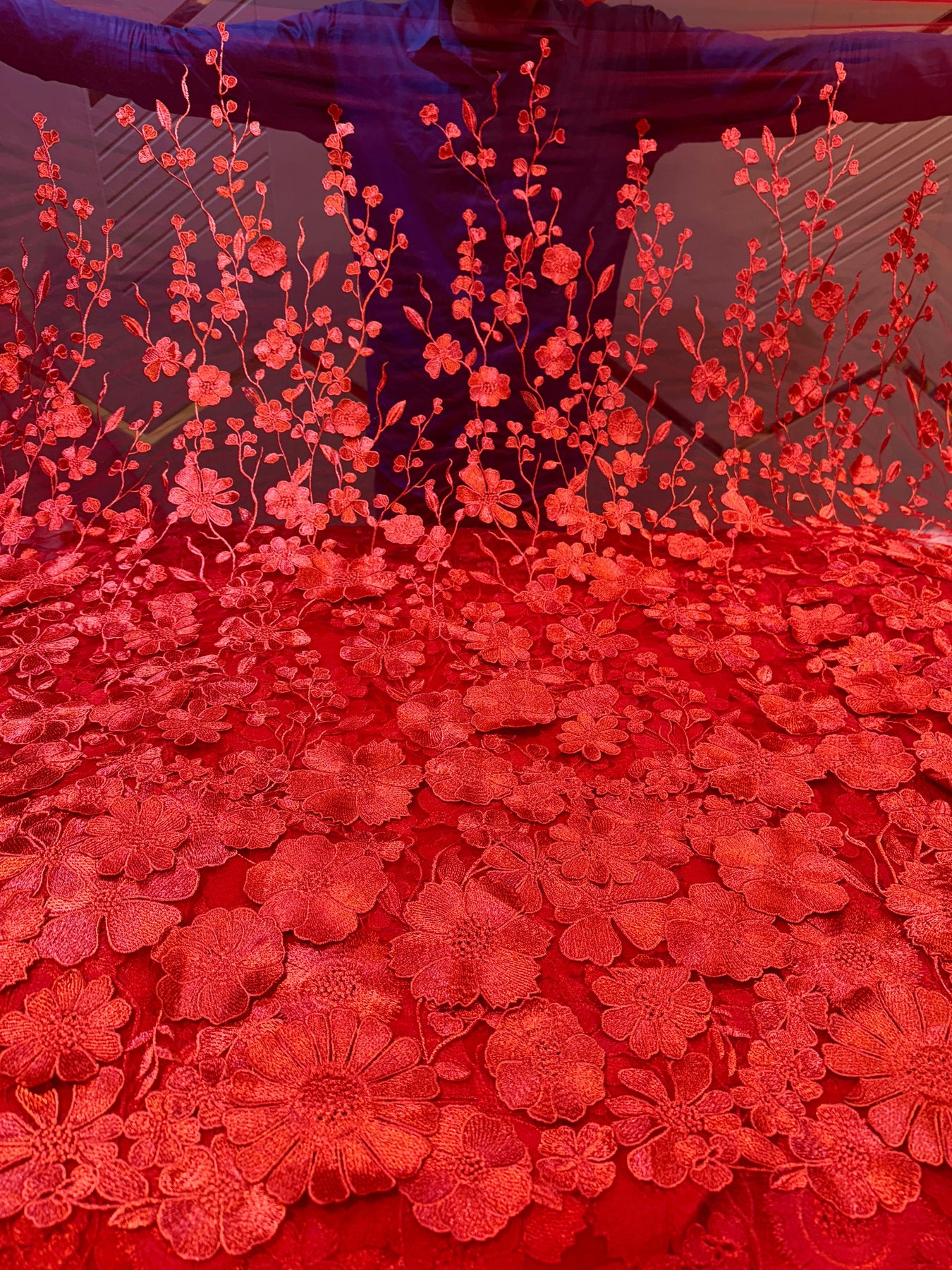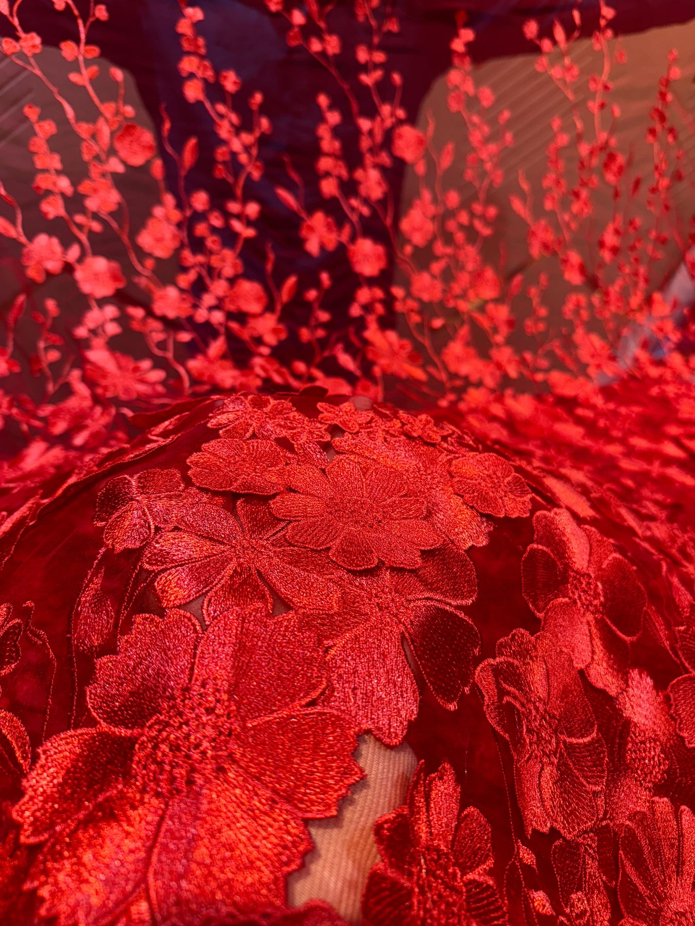 (Precut of 0.60 Meter) Red Dream Net Applique Imported Net Embroidery 56 inch Width