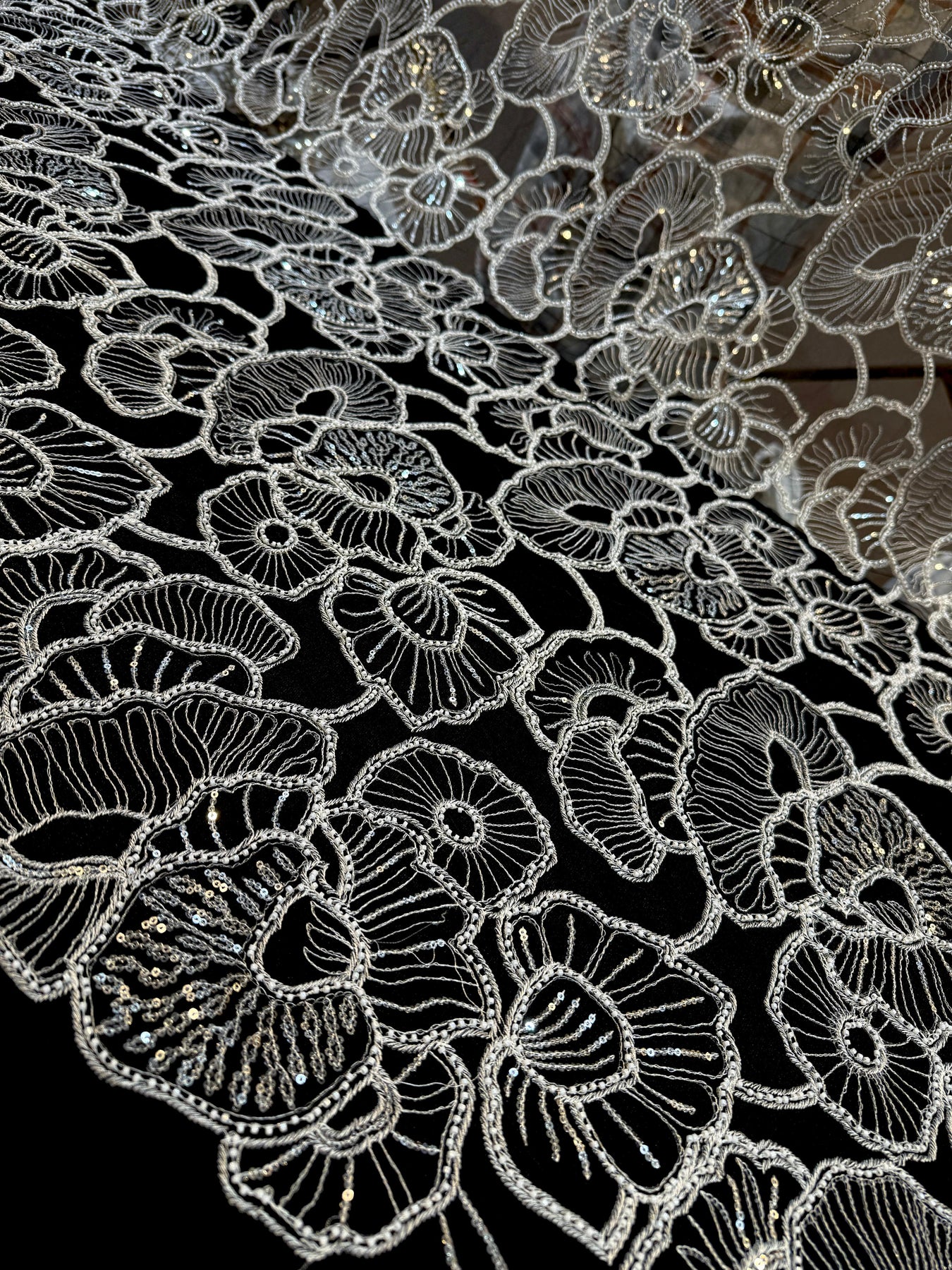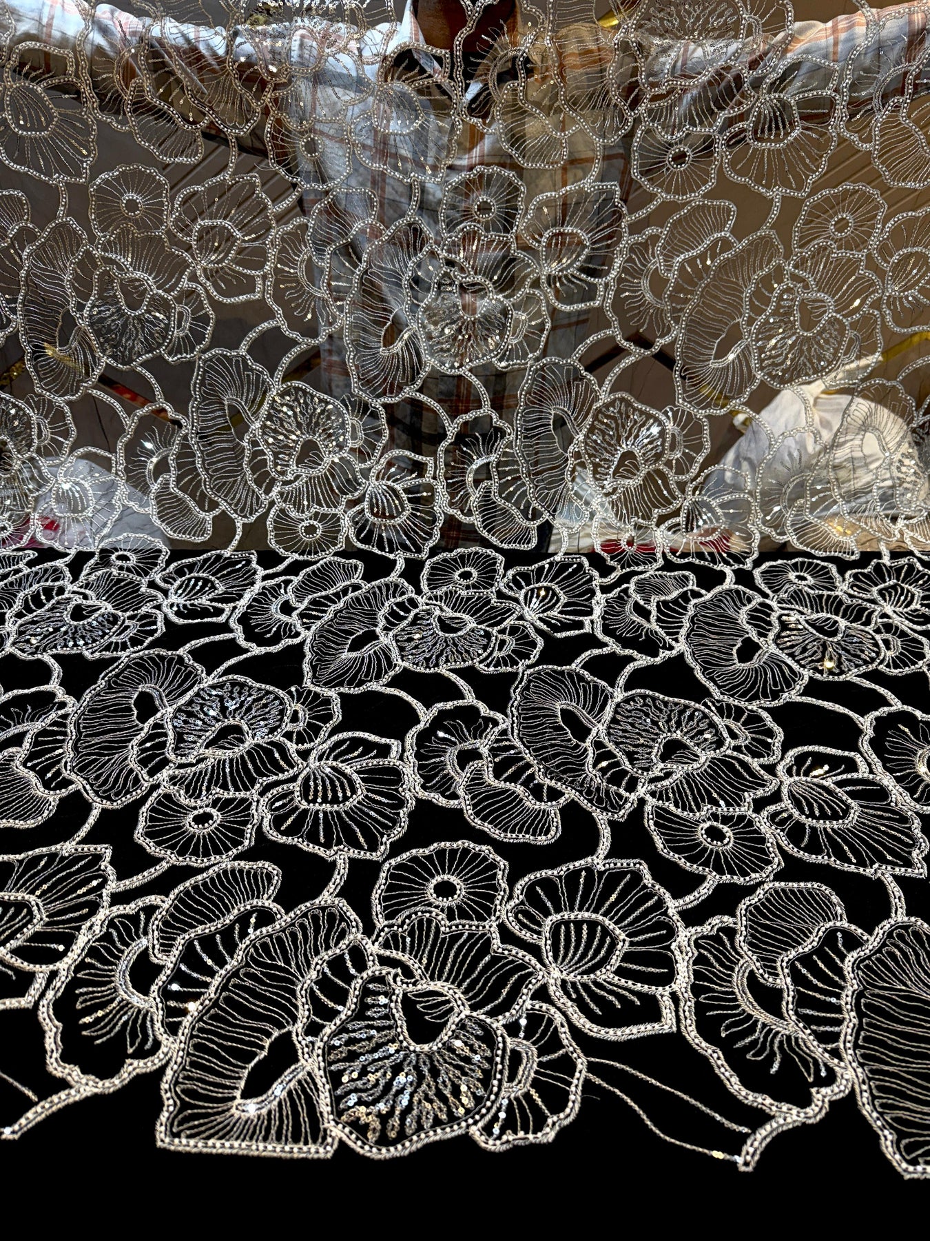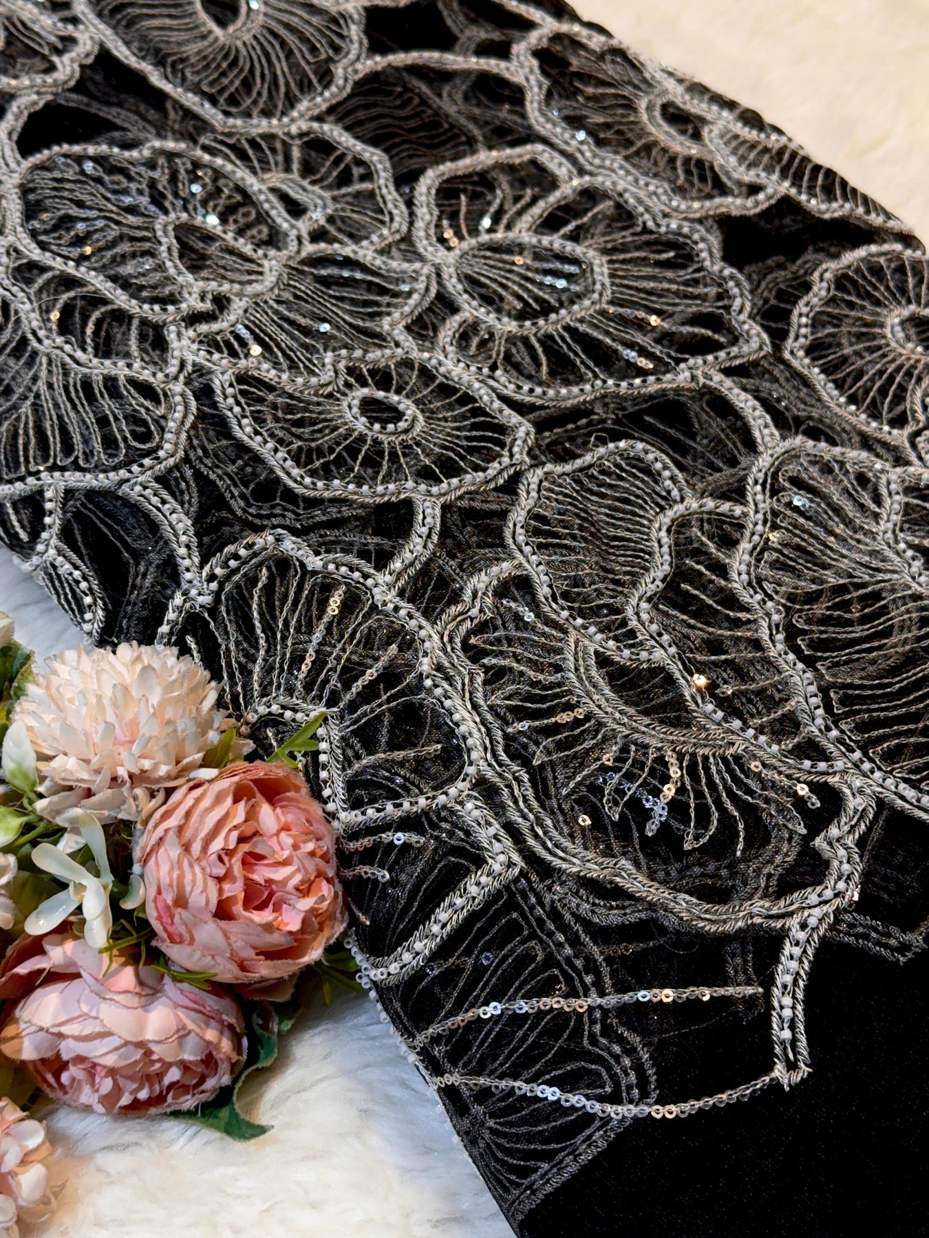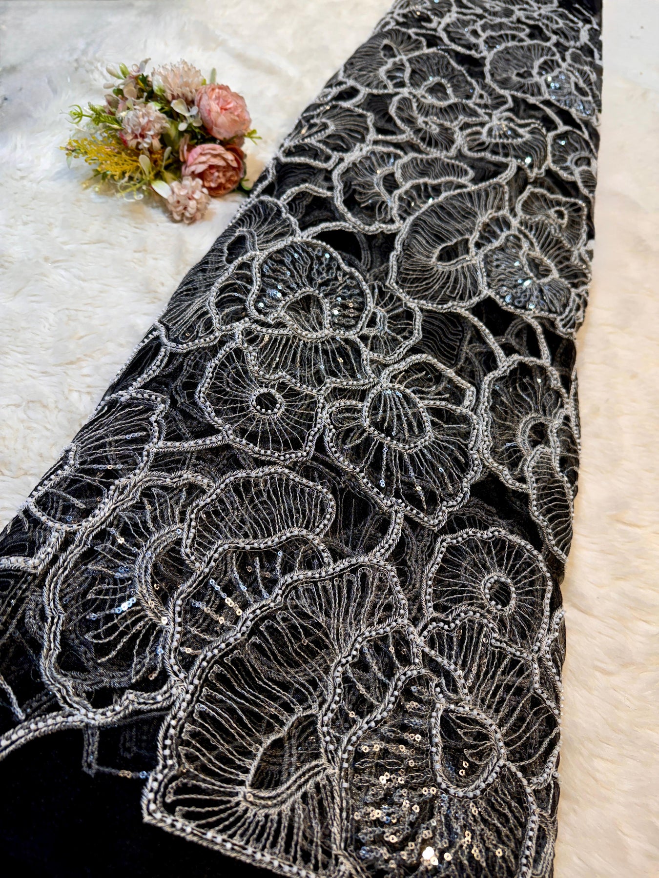 (Precut of 2 Meter) Black Imported Handwork Net Embroidery 48 inch width