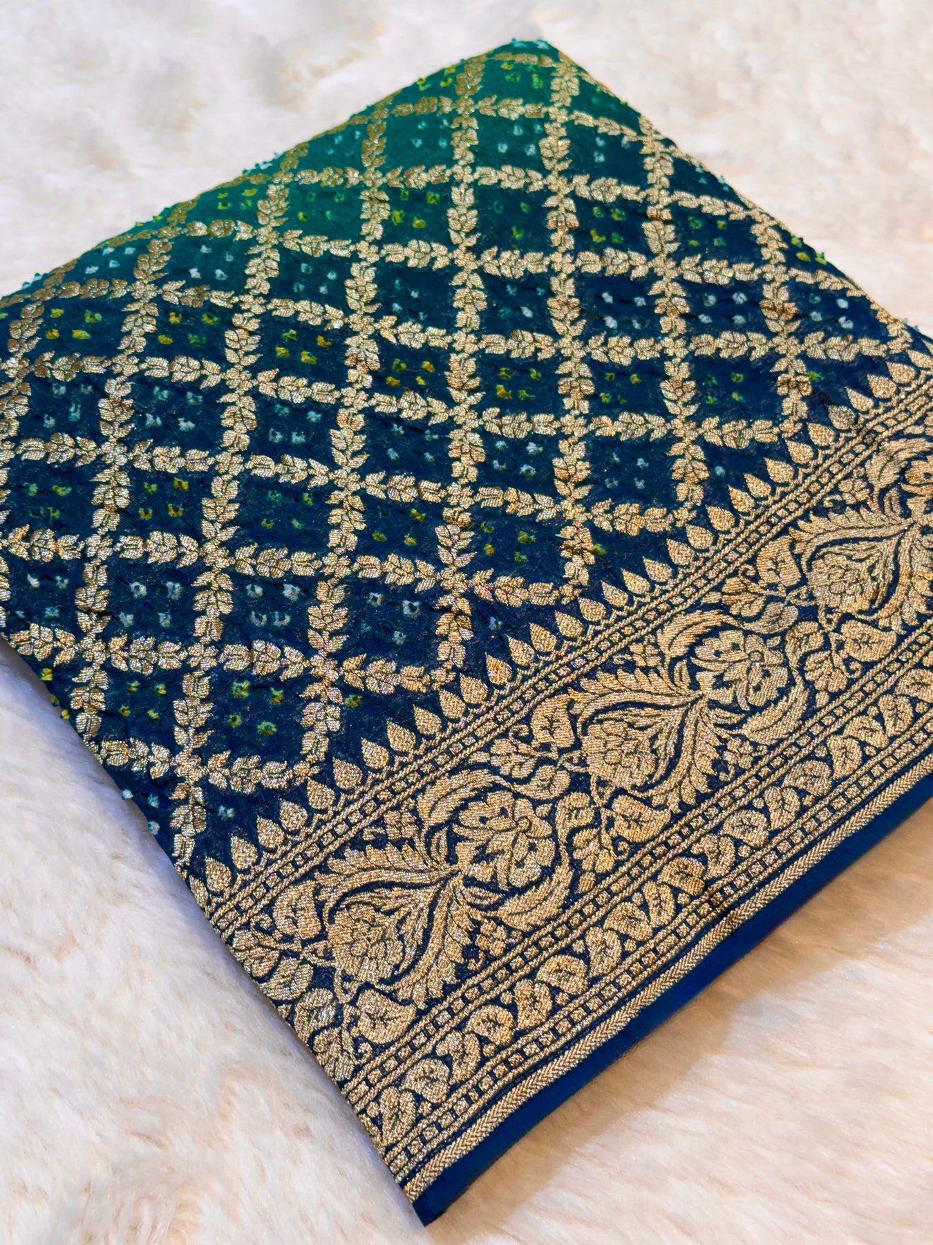 Pure Georgette Handmade Bandhini Dupatta with Banarasi Work 2.50 meter length