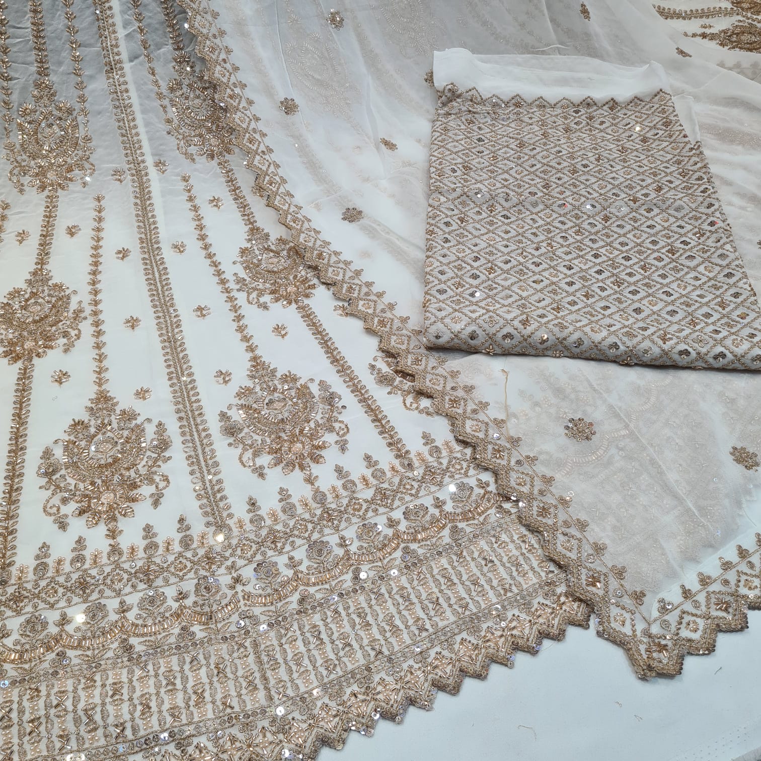 Pure Georgette Handwork Lehenga Choli Dupatta Sets Dyeable (R)