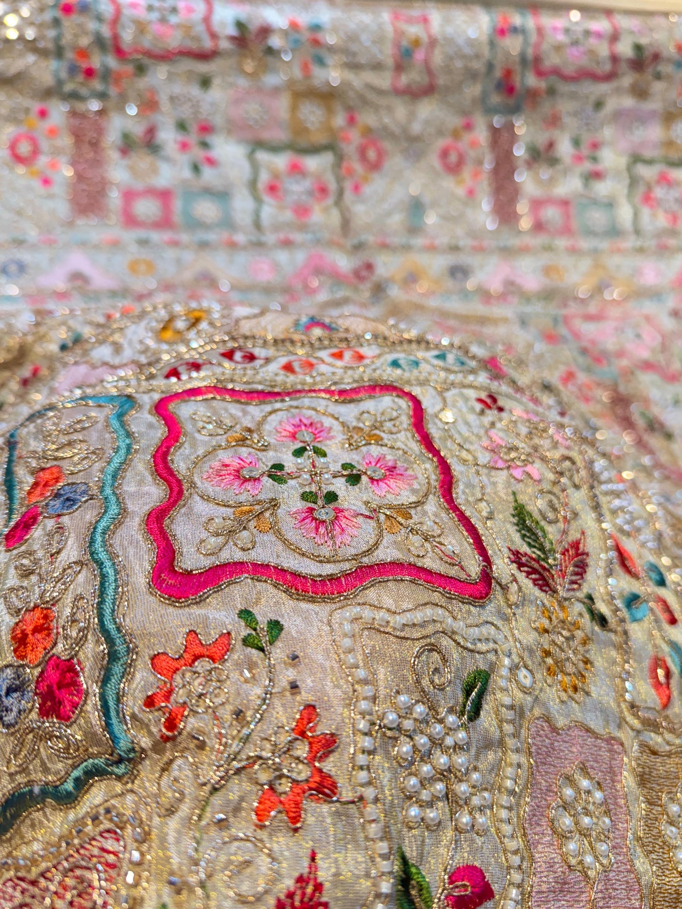 Iknoor Pure Zari Tissue Handwork Embroidery With Thread And Cutdana work 44 inch width