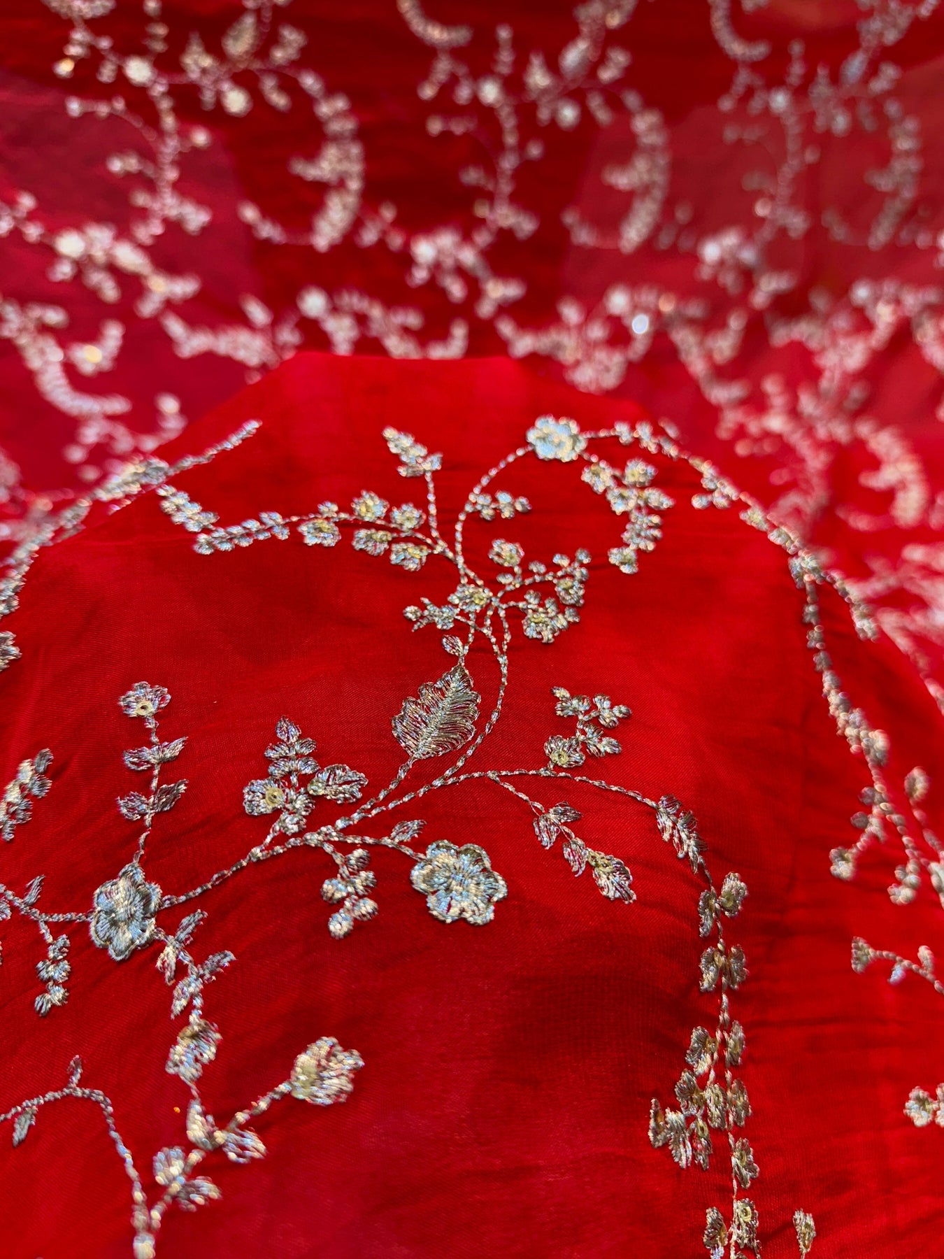 Red Sabhya Pure Organza Embroidery 44 inch Width