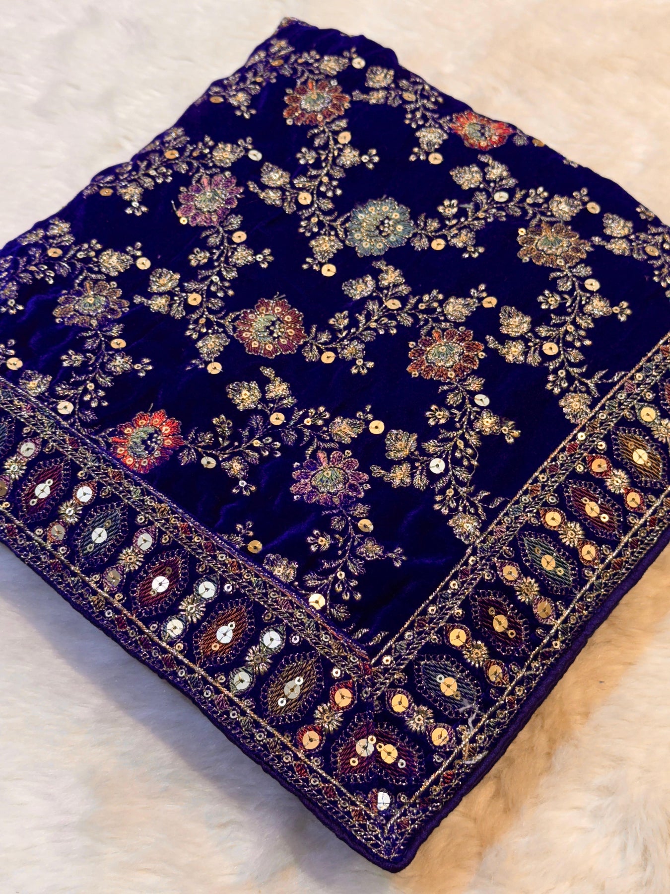Royal Blue velvet Limited Edition Dupatta With Embroidery 2.40 meter length