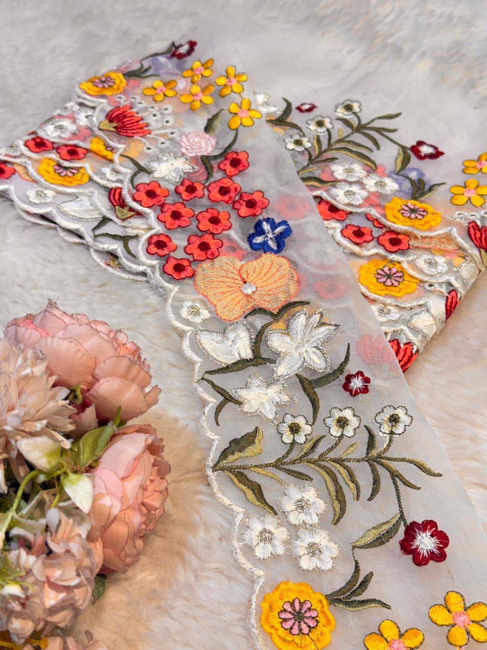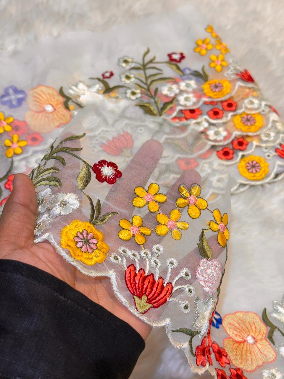 (Wholesale pack of 5.65 meter ) Organza Lace Border With Cutwork and Thread Work