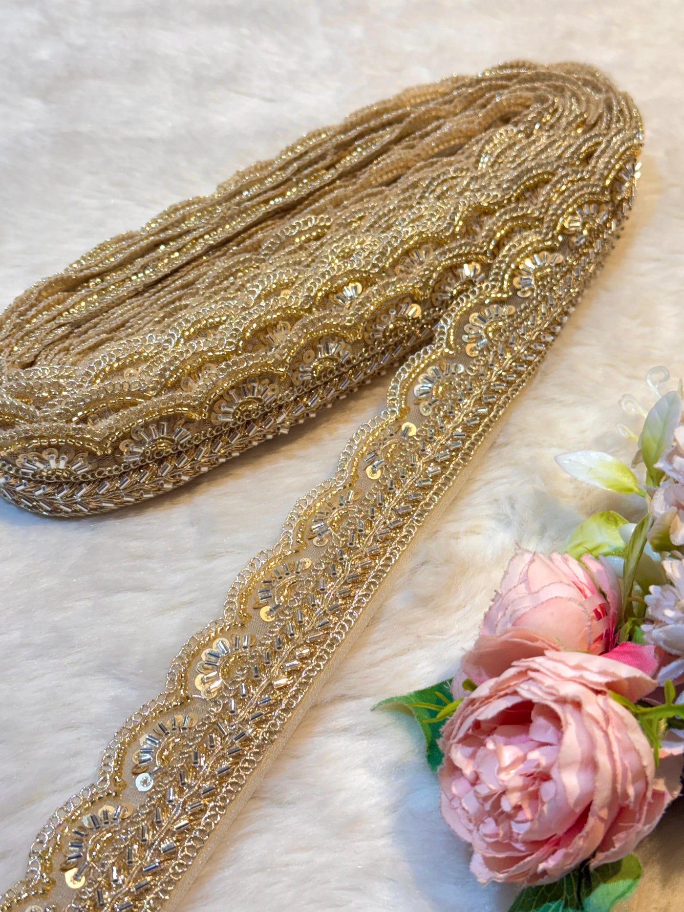 (Wholesale pack of 9 meter ) Lace Border With Cutdana and Sequins Work
