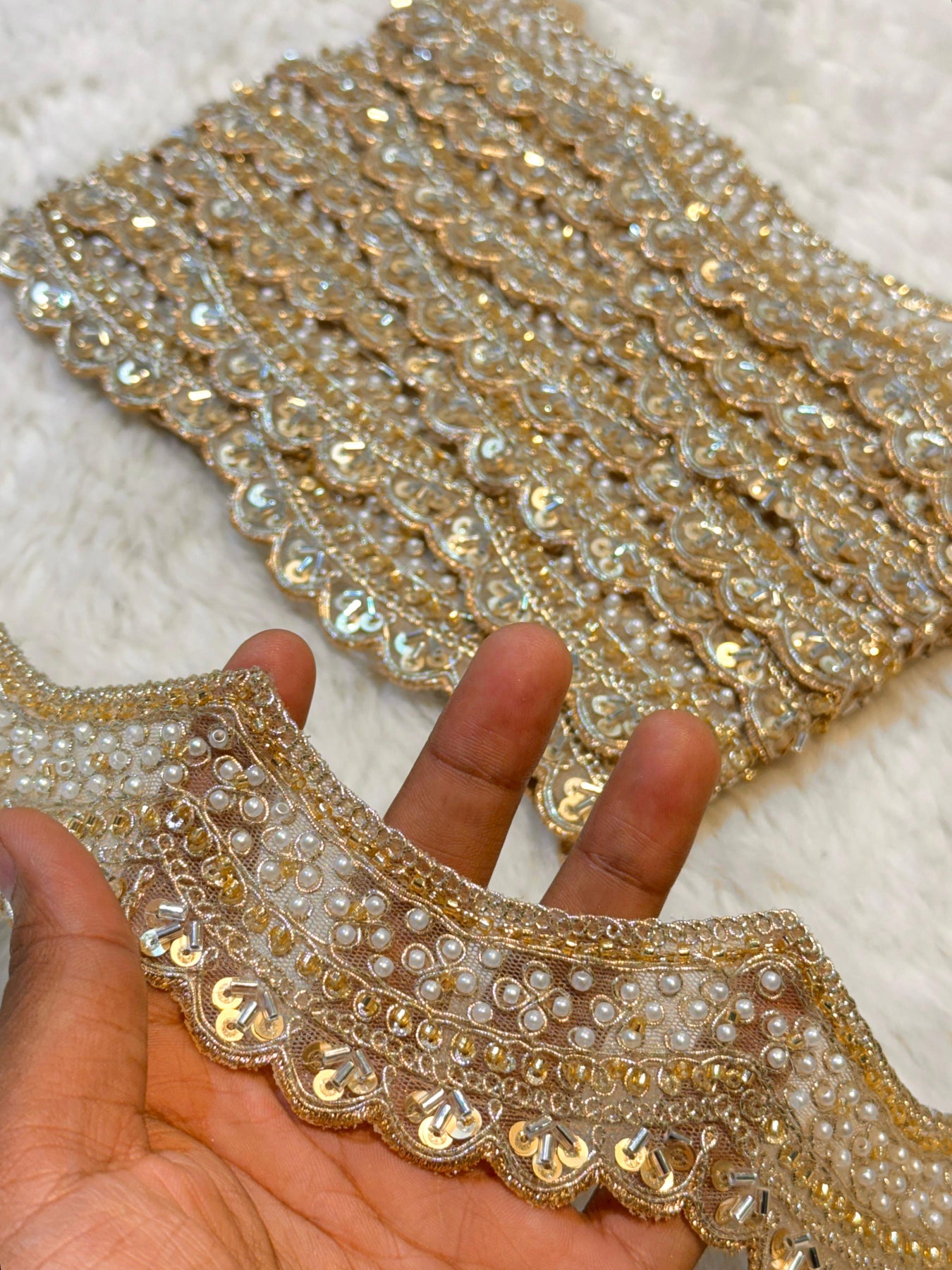 (Wholesale pack of 9 meter ) Lace Border With Cutdana, Sequins and Pearl Work