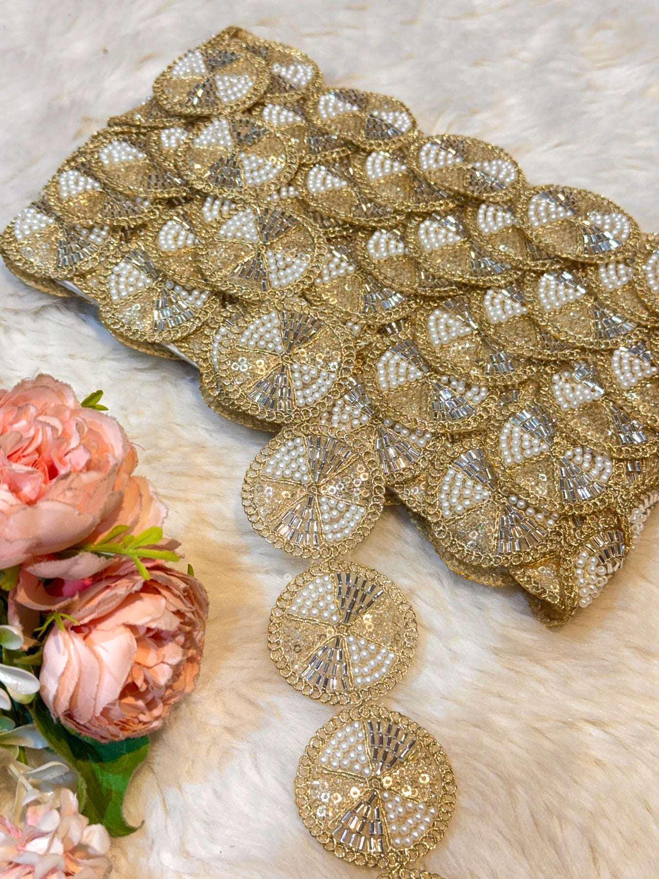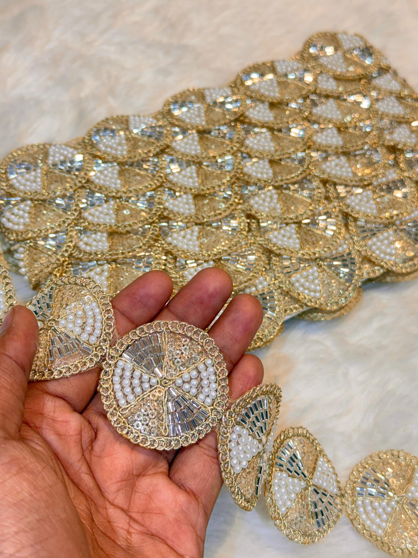 (Wholesale pack of 9 meter ) Lace Border With Pearl, Cutdana and Sequins Work